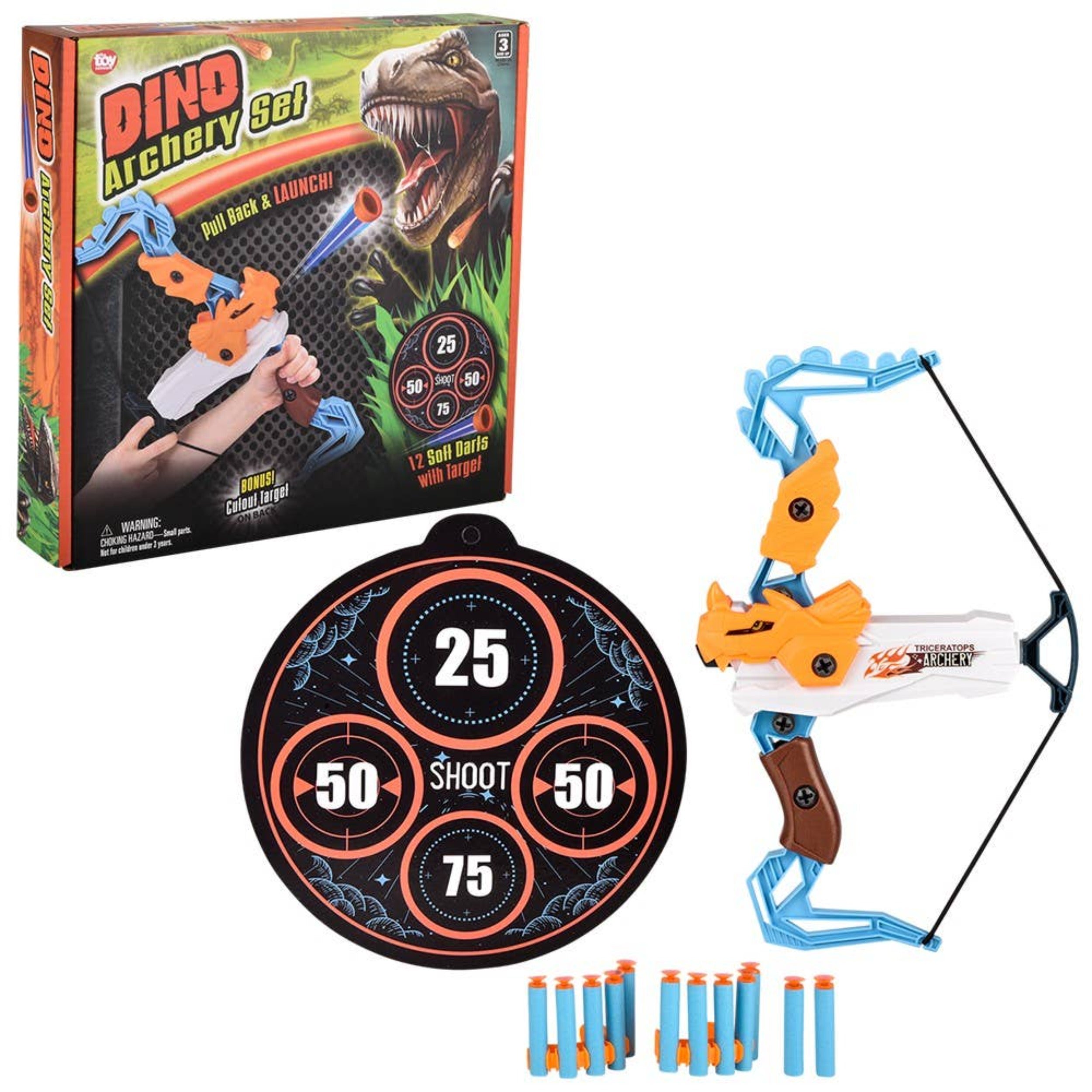 Transform playtime into a thrilling adventure with our 14" Dinosaur Archery Set. Sold as a set, this gift is perfect for young boys, combining imaginative play with skill development. The dinosaur-adorned bow, target board, and foam "arrows" create an engaging and safe archery experience suitable for indoor and outdoor use.