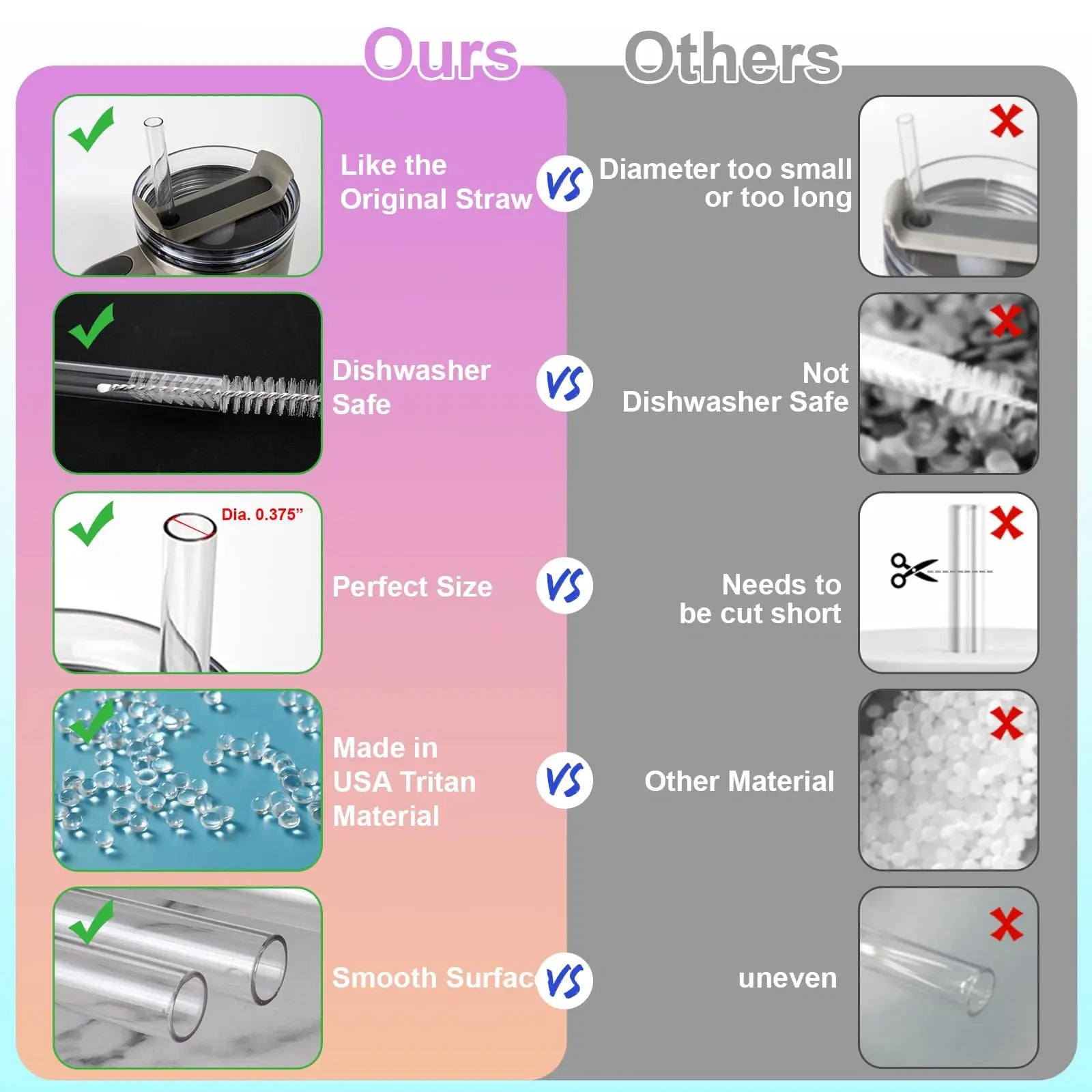 • Cleaning Brush Included: Comes with a cleaning brush to easily maintain and sanitize your straws.