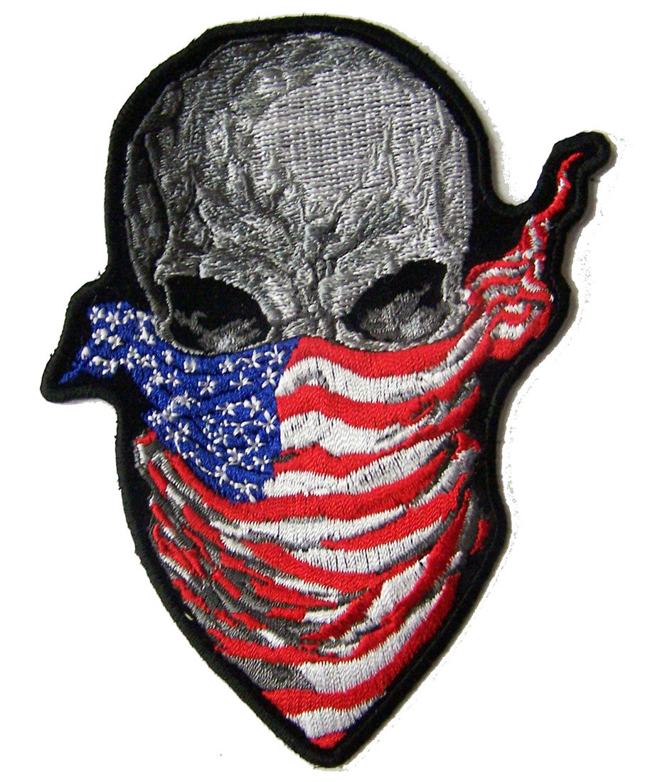 Home Wholesale AMERICAN BANDANA SKULL EMBROIDERED PATCH 4 INCH (Sold by the piece)