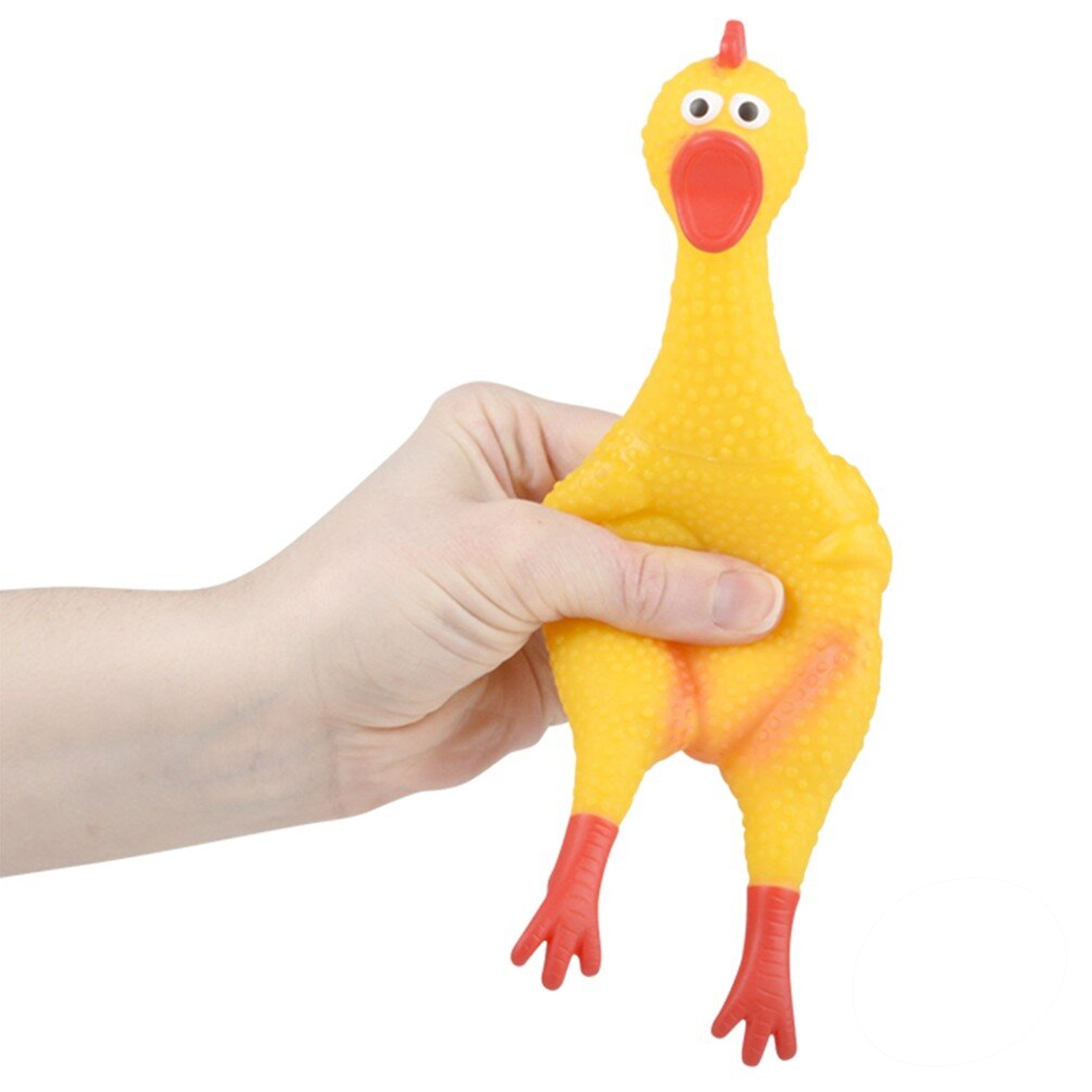 Classic Design: The 8" Big Rubber Chicken features a timeless design that never fails to entertain. Its bright yellow color and squeaky sound make it a favorite among children and a humorous addition to any event.