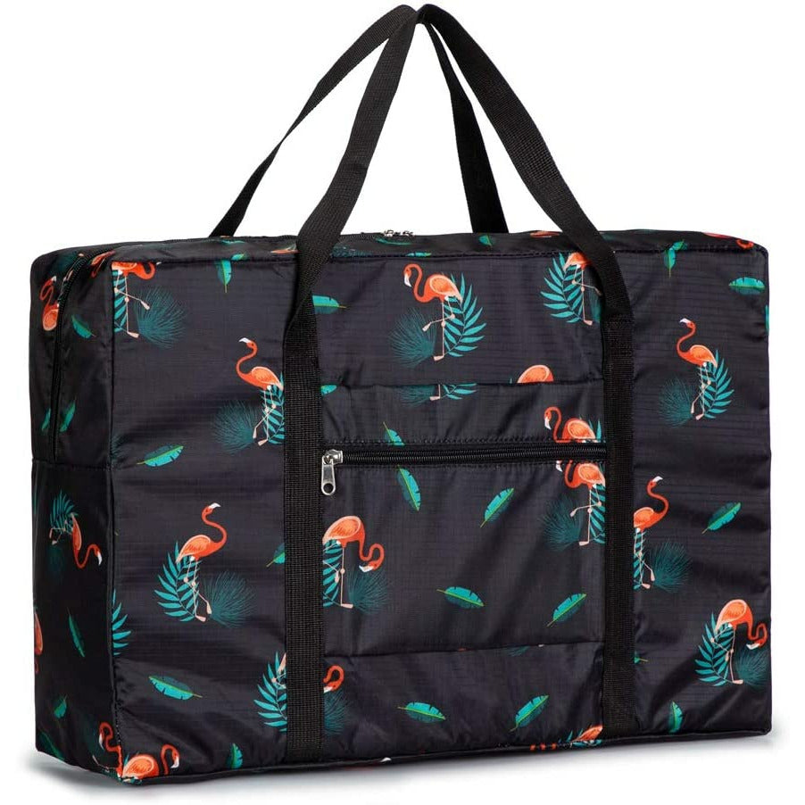 This flamingo foldable duffle bag are an adjustable over-the-shoulder strap and handles for ease of carrying. This eye stopping print makes it easy to identify bag when traveling or at the gym.