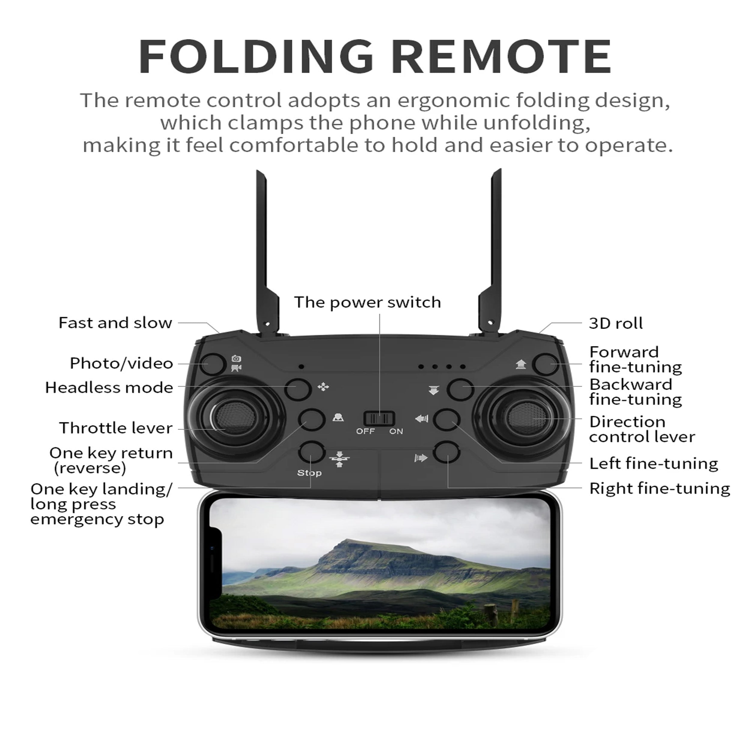 Altitude Hold and Headless Mode: Benefit from altitude hold for stable flights and headless mode for simplified controls, making the drone easy to navigate and ideal for users of all skill levels.