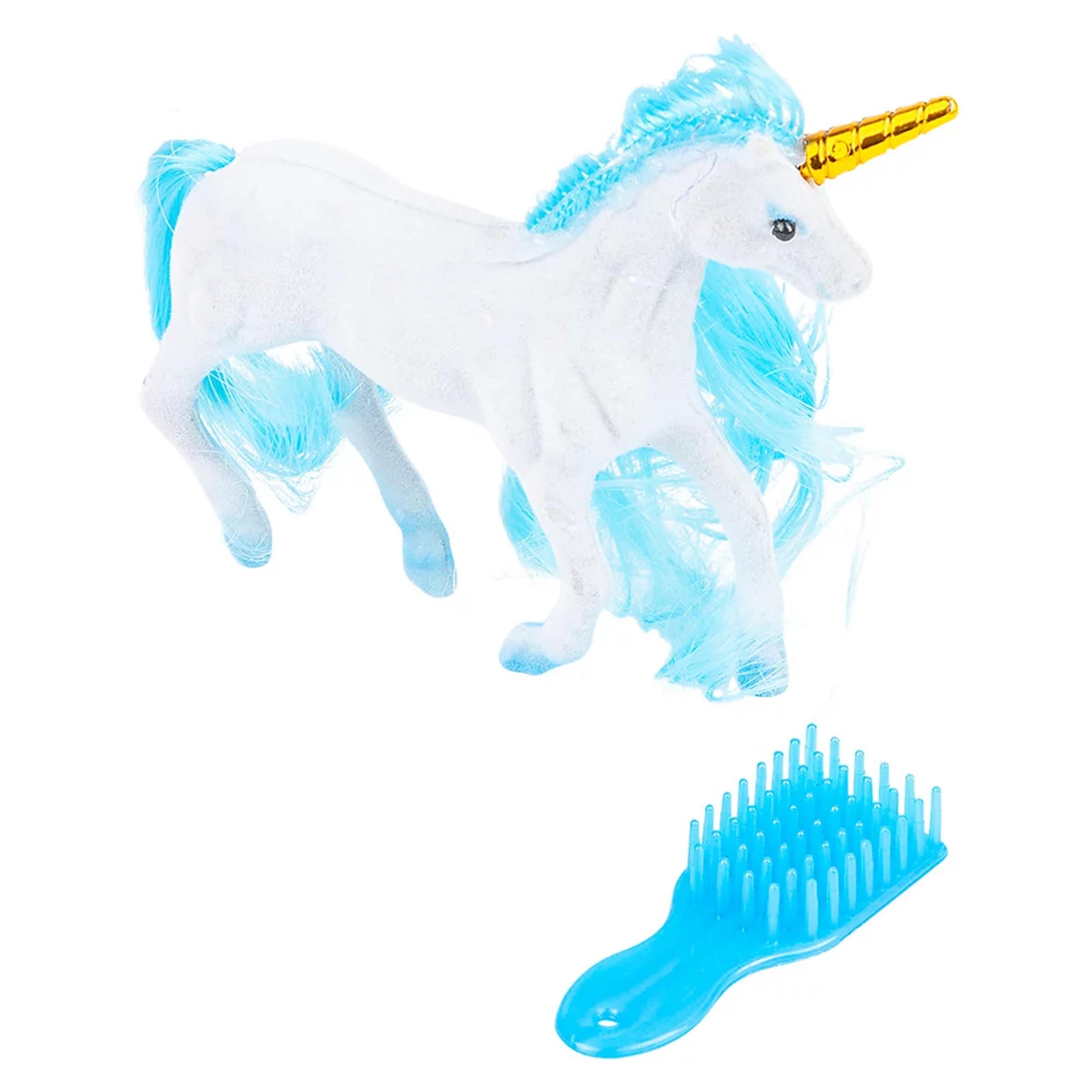 Enter a world of magic and wonder with our Assorted Bulk Pack of Flocked Unicorn Play Set Kids Toys! This wholesale pack features a captivating collection of flocked unicorn play sets in assorted colors and designs, perfect for igniting imaginations and creating enchanting adventures. Each play set includes a majestic flocked unicorn figurine along with accessories such as a rainbow mane brush, glittery wings, and a magical wand, allowing children to immerse themselves in imaginative play scenarios full of sparkle and charm. Whether flying through rainbow-filled skies, exploring enchanted forests, or attending royal unicorn gatherings, these flocked unicorn play sets inspire endless hours of creativity and fun for children of all ages. With assorted colors and designs to choose from, kids can collect and mix and match their favorite unicorn play sets for even more magical adventures!