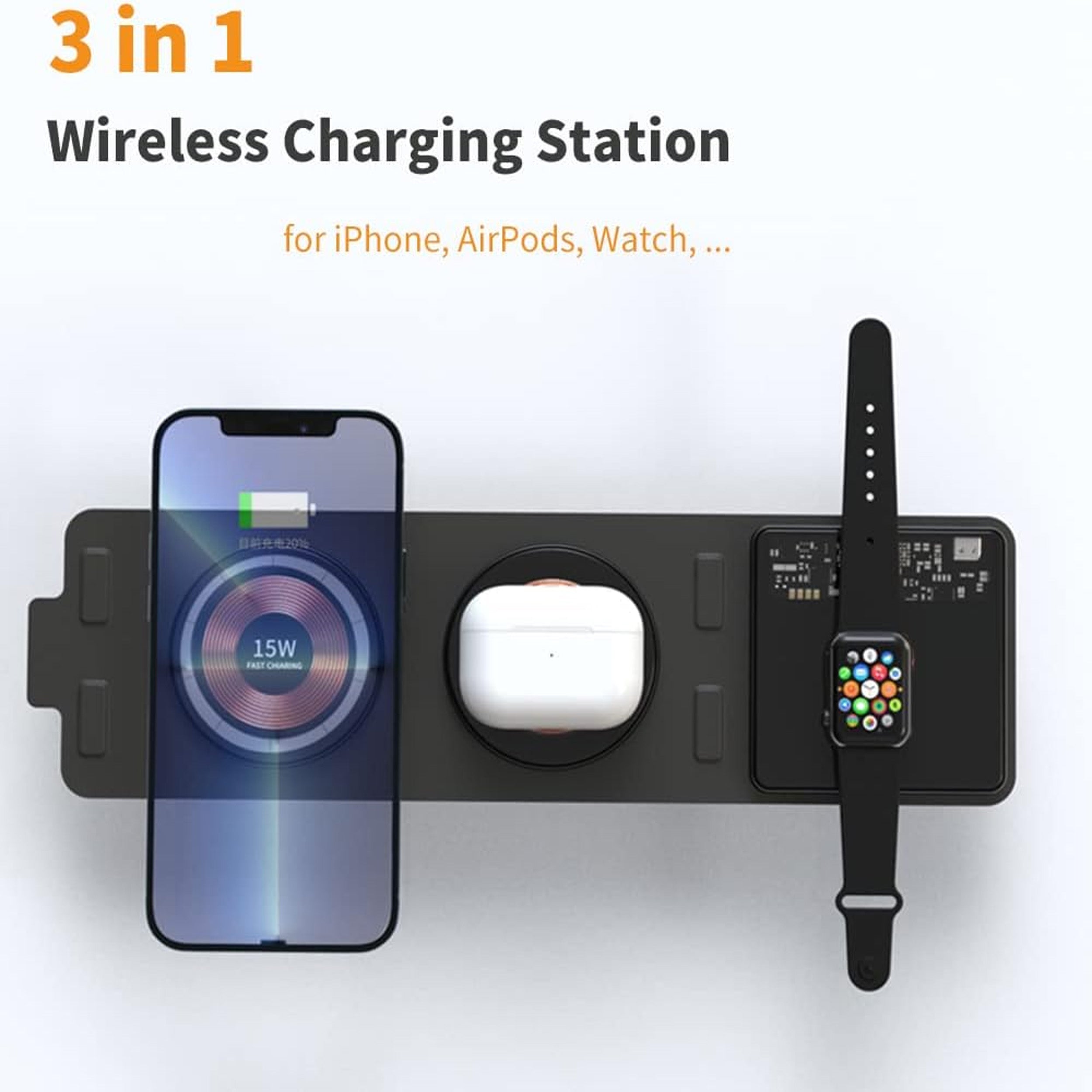 Wireless Charging for Multiple Devices: The Foldable Charger Station supports wireless charging for multiple devices simultaneously. Say goodbye to cable clutter and keep your devices charged without the hassle of individual chargers.