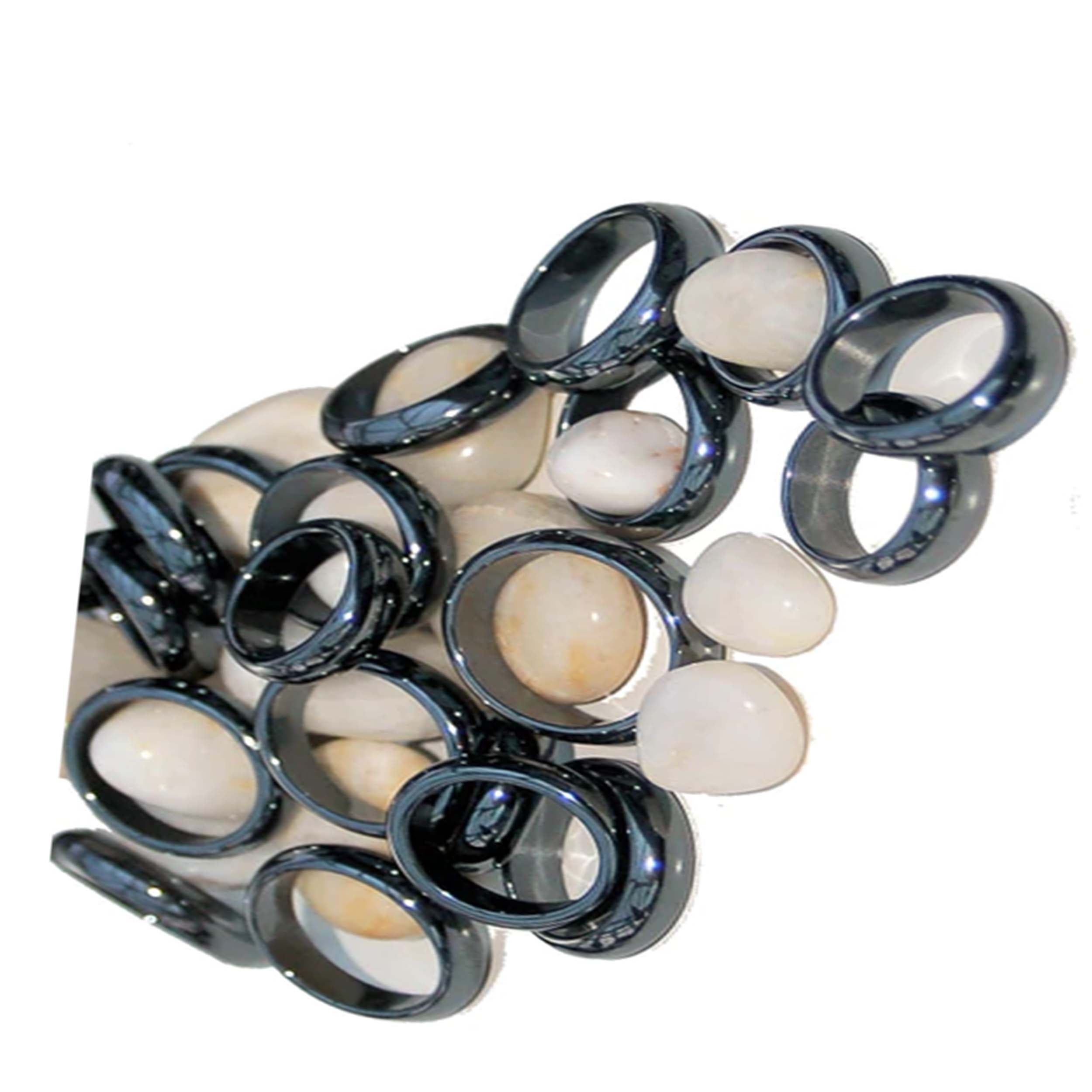 Experience the harmonizing influence of Hematite and make a bold style statement with these captivating stone rings.