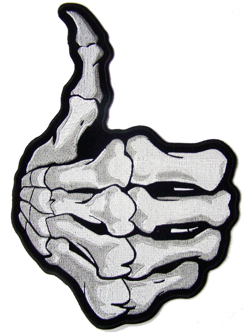 Home Wholesale JUMBO SKELETON BONES HAND THUMBS UP EMBROIDERED PATCH 11 INCH (Sold by the piece)