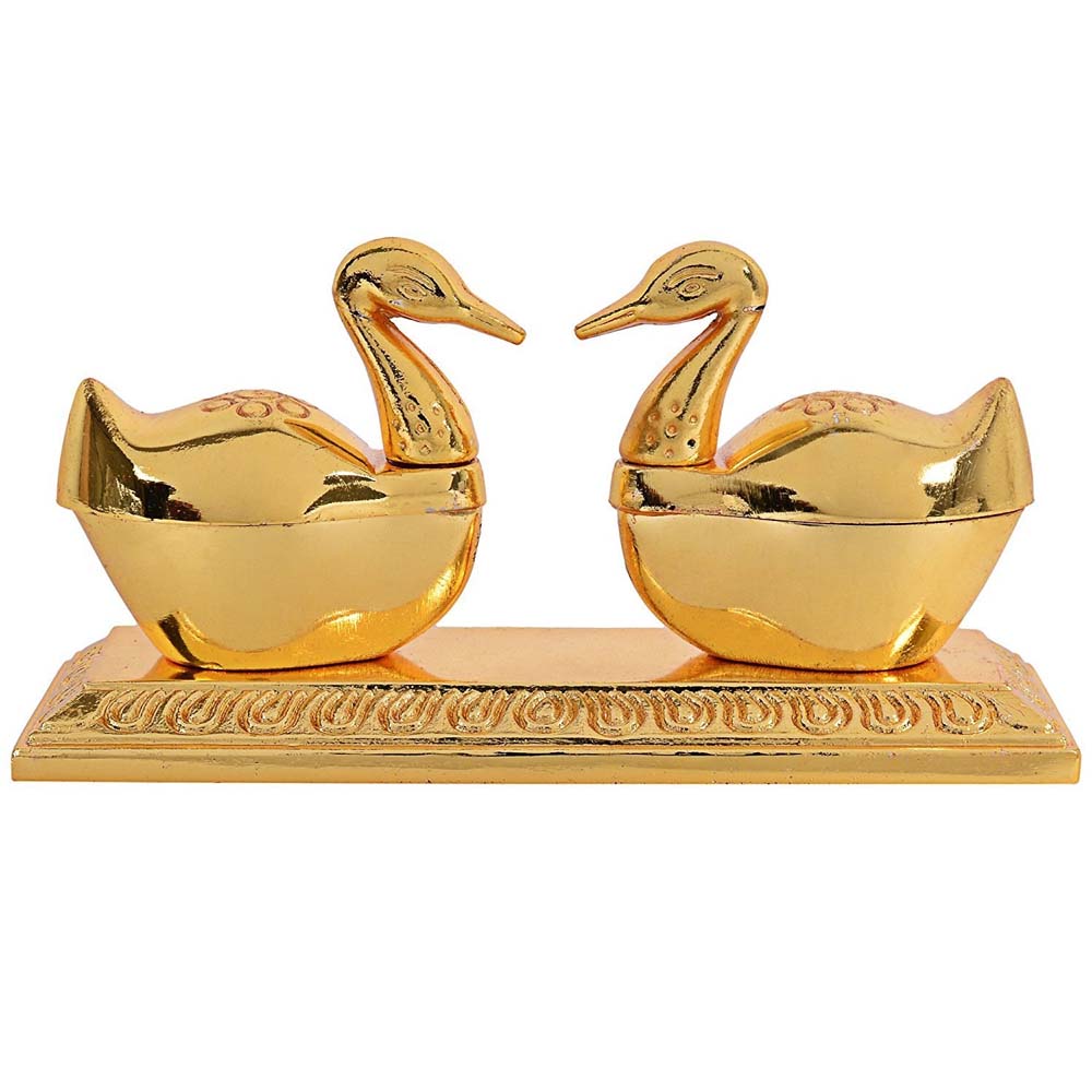 Introducing our Duck-Shaped Kumkum Holder, a graceful blend of spirituality and artistry. This uniquely designed holder is crafted with precision, resembling a charming duck figure. Made with reverence and attention to detail, it serves as the perfect vessel for storing and offering kumkum during religious ceremonies.