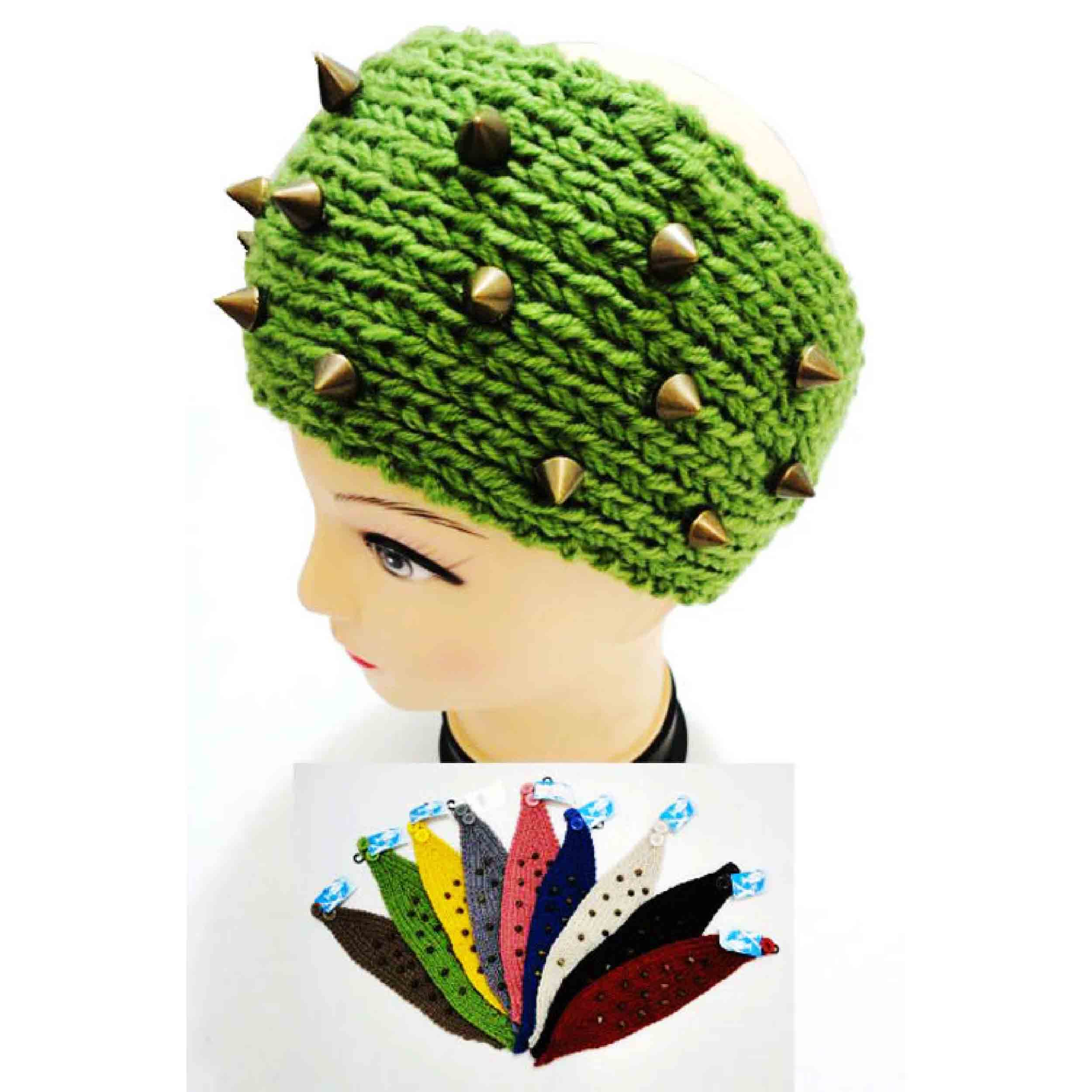 Stay stylish and cozy this winter with our Ladies Knitted Headbands featuring edgy spike studs. Available in a vibrant array of colors including Grey, Hot Pink, Royal Blue, Brown, Teal, Orange, Yellow, Coffee, Black, Coral, Green, and more, these wide headbands add a bold statement to any outfit. Each headband measures approximately 19" long x 5" wide when unstretched and is crafted from 100% acrylic material.