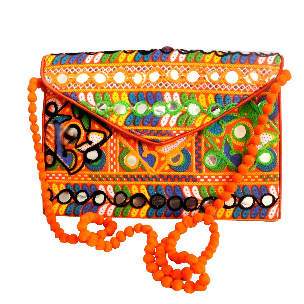 Cultural Fusion: This handcrafted pouch bag beautifully fuses traditional mirror work with modern design, resulting in an accessory that celebrates heritage while embracing contemporary fashion.