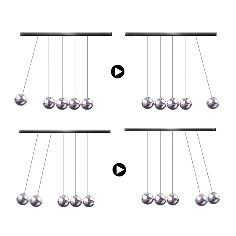 Explore the principles of physics with the Newton Pendulum Cradle Balance Steel Balls. This classic desktop toy demonstrates the concept of momentum and energy conservation through a series of swinging steel balls. When one ball is lifted and released, it strikes the others, causing a ball on the opposite end to swing outward in a perpetual motion. Ideal for educational purposes, office decor, or as a unique conversation piece, this pendulum cradle combines scientific principles with elegant design.
