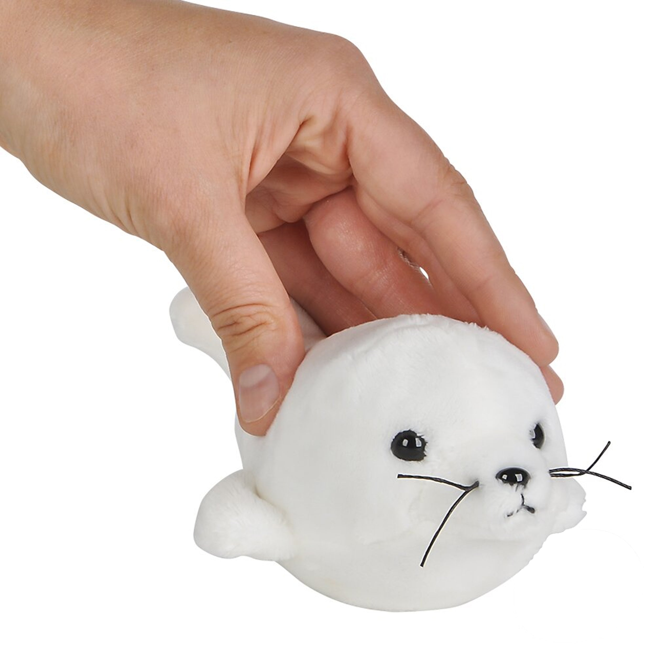 Realistic & Adorable Design – Features charming black eyes, a tiny nose, and soft white fur, mimicking a real harp seal pup.