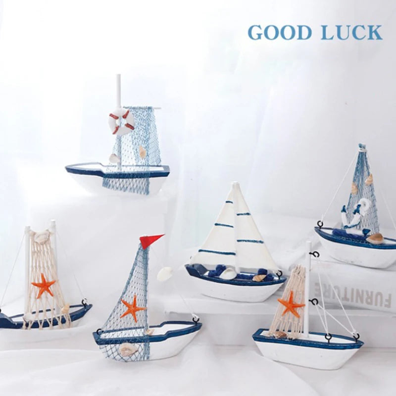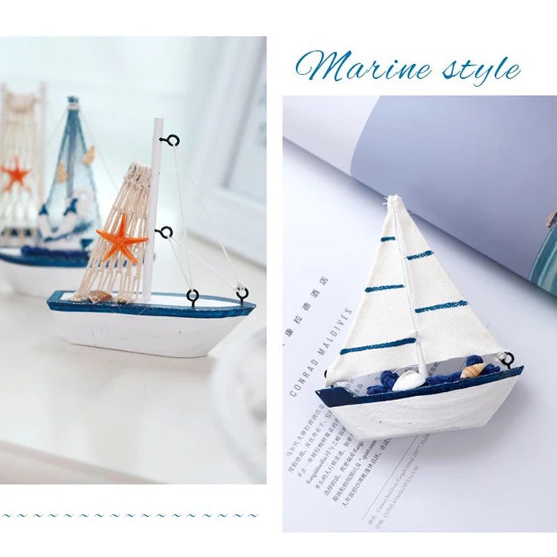 Sailboat Model Wooden Sailing Boat Home Decoration Beach Nautical Design Navy