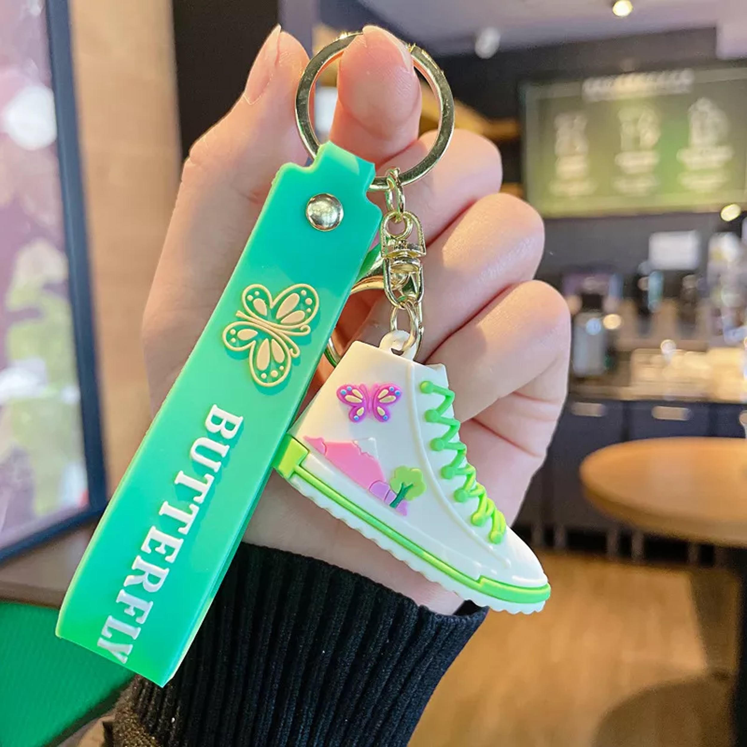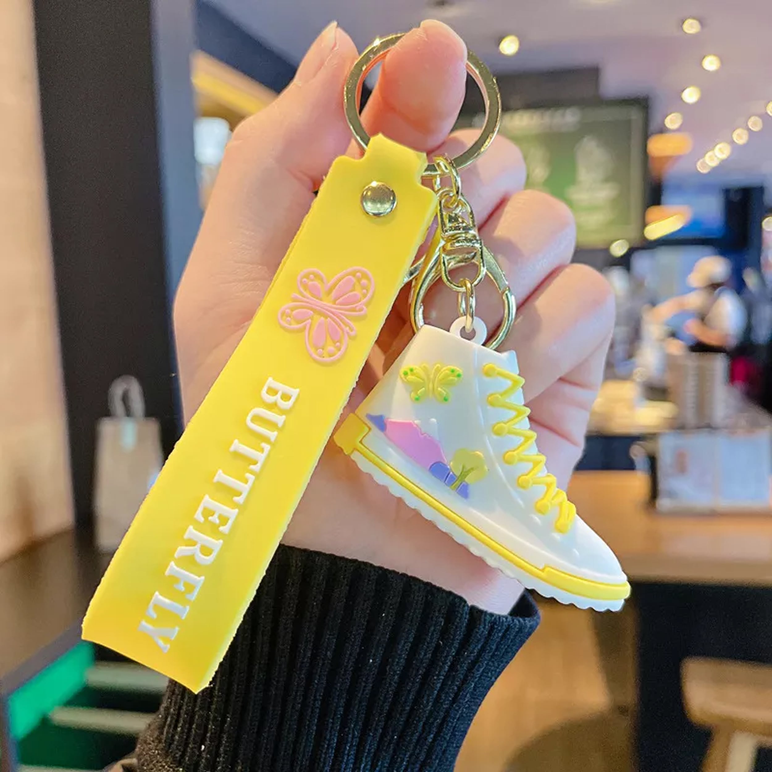 Embrace charm and elegance with our Shoe with Butterfly Wrist Strap Keychain! This delightful accessory features a shoe-shaped keychain adorned with a butterfly-designed wrist strap, adding a touch of loveliness to your bags or keys. Perfect for girls, couples, or students, this chic and adorable keychain doubles as a stylish bag pendant. Crafted intricately, it captures the fusion of a fashionable shoe design and the delicate beauty of fluttering butterflies. Elevate your style or surprise a loved one with this charming keychain, ideal for accessorizing schoolbags, handbags, or keys with a blend of sophistication and sweetness.