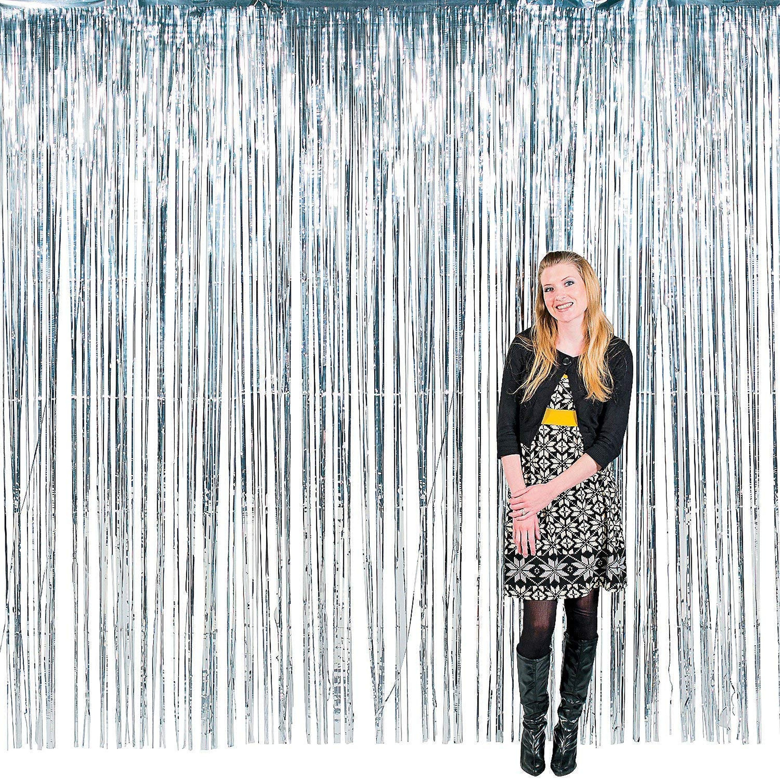 Elevate your home and birthday decorations with our Silver Foil Fringe Curtain. This stunning and shimmering curtain is not just a backdrop; it's a showstopper that adds a touch of glamour and excitement to your celebrations. Whether you're hosting a birthday party, a New Year's Eve bash, or simply want to transform your space, this curtain is your go-to choice for instant sparkle and pizzazz.