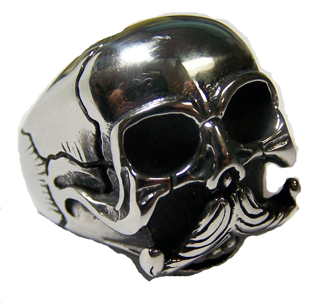 COOL !!!! SOLID STAINLESS STEEL RING HIGH QUALITY WE HAVE ASSORTED SIZES SIZES VARIETY FROM 7 TO 13 STRONG WON'T BREAK OR BEND MENS OR WOMENS RING GREAT FOR GOTHIC LOVERS, SKATERS AND BIKERS YOU'LL LOVE THESE GREAT GIFT FOR YOUR FRIENDS THIS STYLE IS VERY POPULAR AND LOVED BY MOST BRAND NEW WHAT A COOL RING