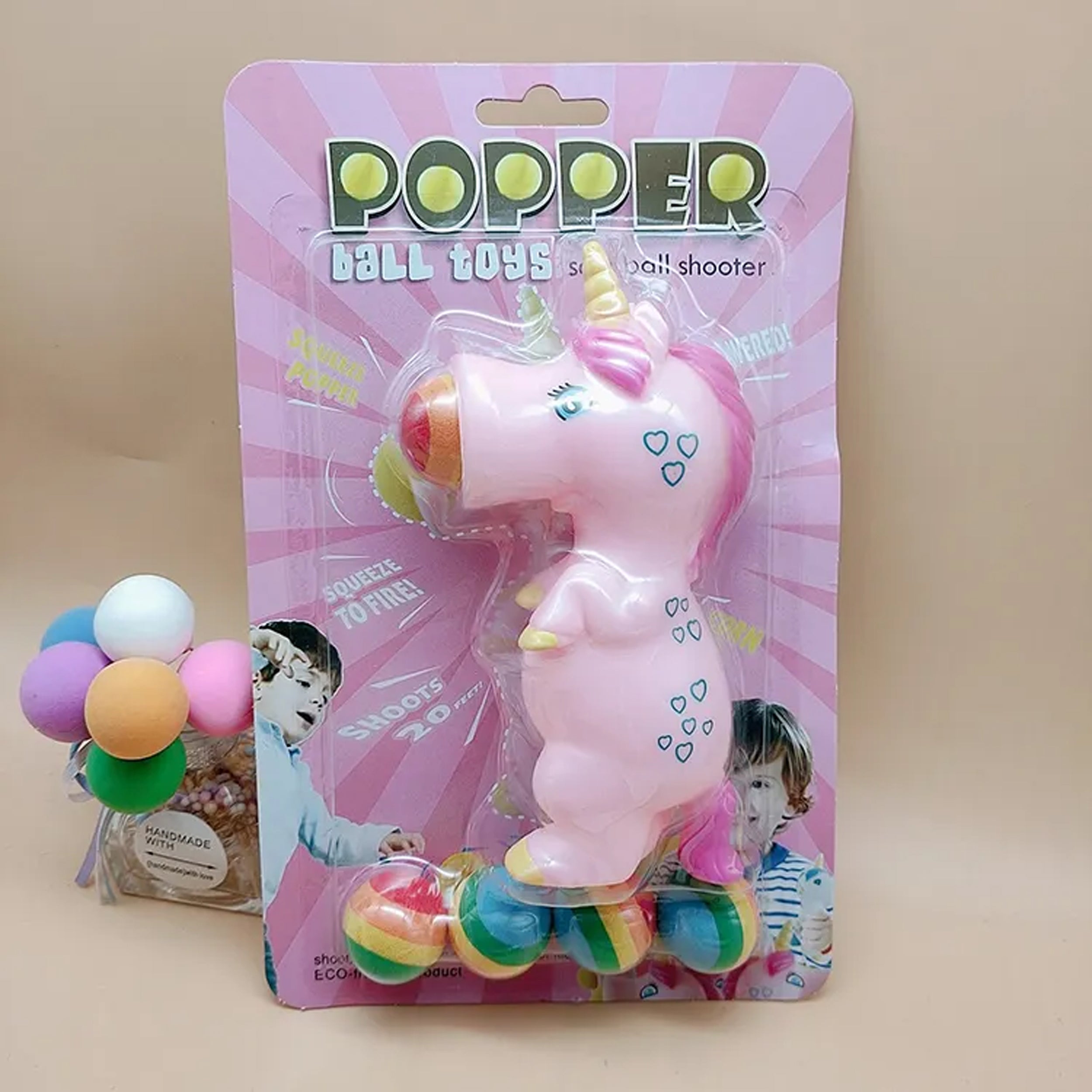 Experience whimsical playtime with our Unicorn Cartoon Animal Sensory Spit Bean Gunner Squeeze Popper Toy equipped with 5 balls. This delightful toy combines the charm of a unicorn-themed design with the engaging action of a squeeze popper toy. Crafted to provide sensory stimulation, this toy shoots soft balls with a simple squeeze, promoting hand-eye coordination and offering a fun-filled play experience. The colorful design and unicorn-inspired elements add a touch of magic to playtime, making it an ideal choice for imaginative adventures and active play sessions.