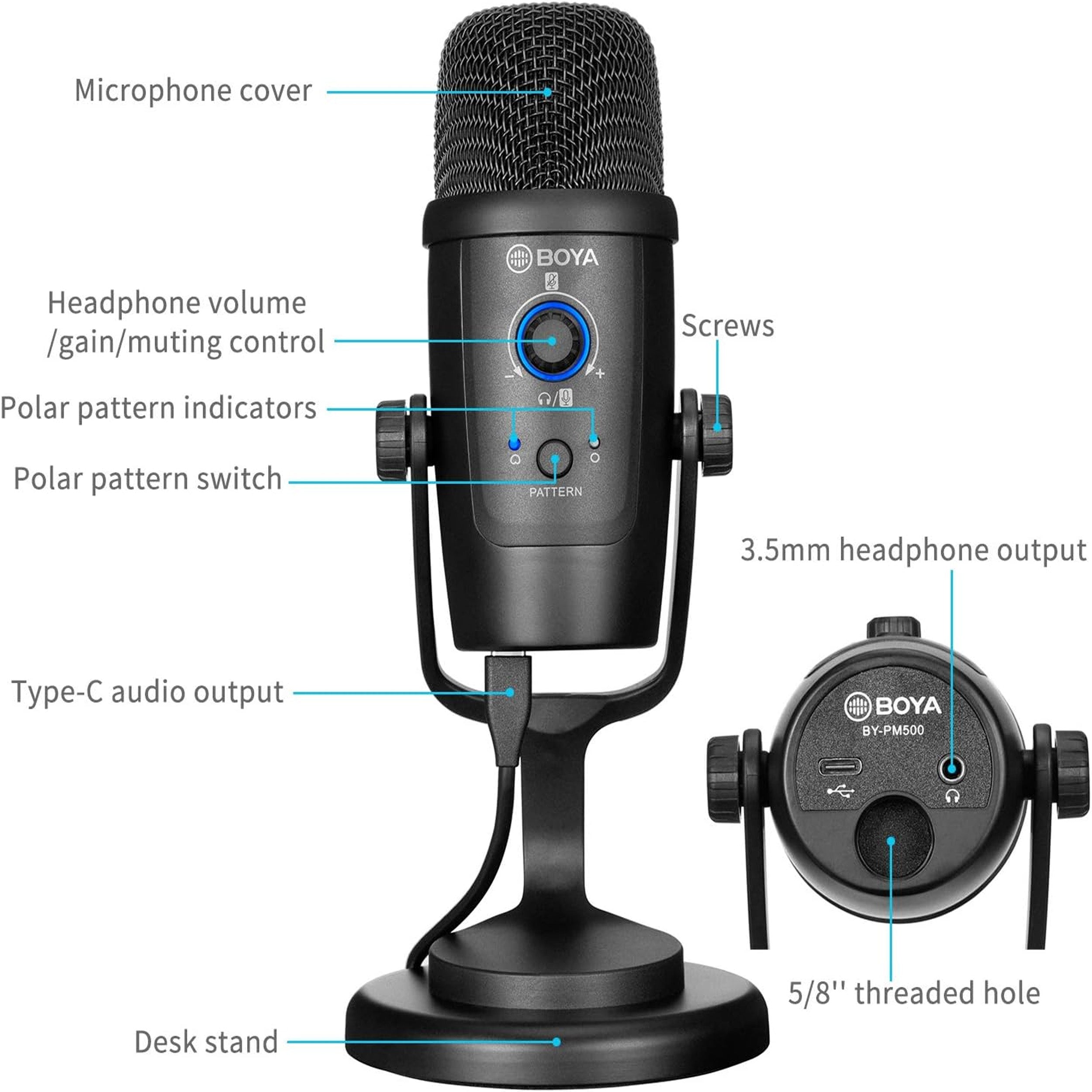 Cardioid Polar Pattern for Focus: The cardioid polar pattern focuses on sound sources directly in front of the microphone, reducing background noise and providing clear and targeted audio capture. Perfect for vocals and streaming where clarity is essential.