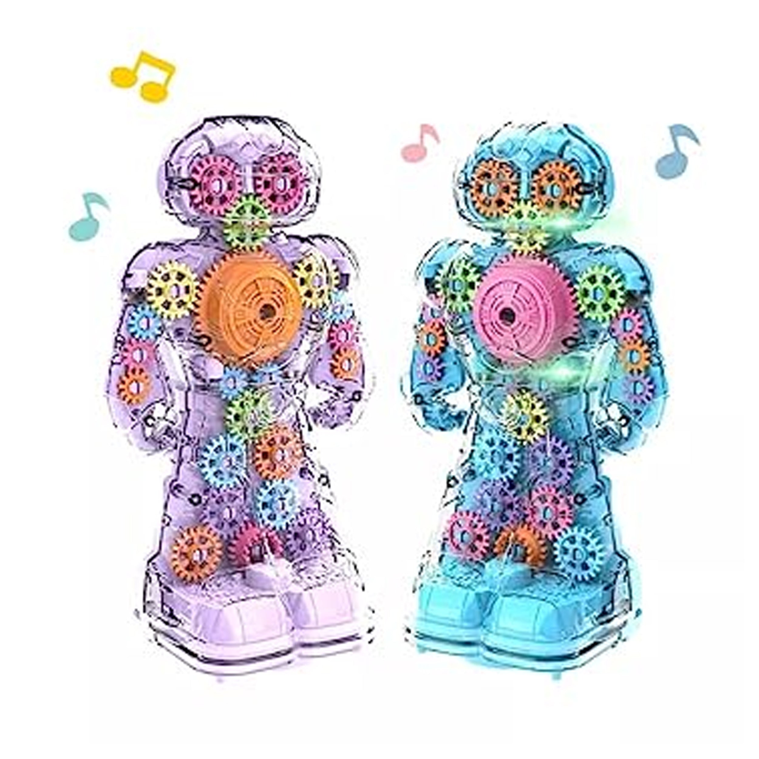 The transparent spinning colorful musical toy battery mechanical gear robots offer more than just entertainment. They also provide valuable educational benefits. As children observe the gears in action, they gain a basic understanding of mechanical systems and how gears work. This hands-on exploration fosters their curiosity, develops fine motor skills, and encourages problem-solving abilities. Additionally, the musical aspect introduces them to different sounds and rhythms, promoting auditory development and creativity.