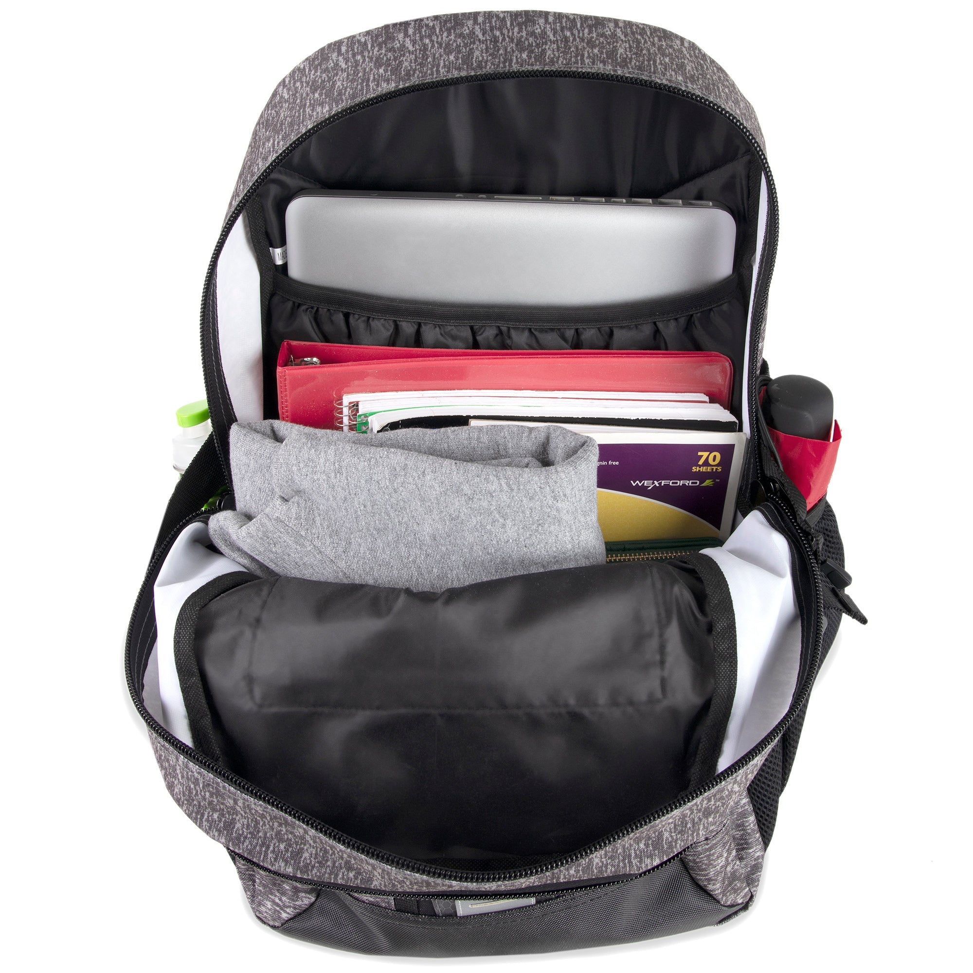 Our Wholesale 19 Inch Heather Bungee Backpack is jam-packed with all the bells and whistles. This backpack features super spacious compartments great for storage for your books, tools, sports gear, and more.