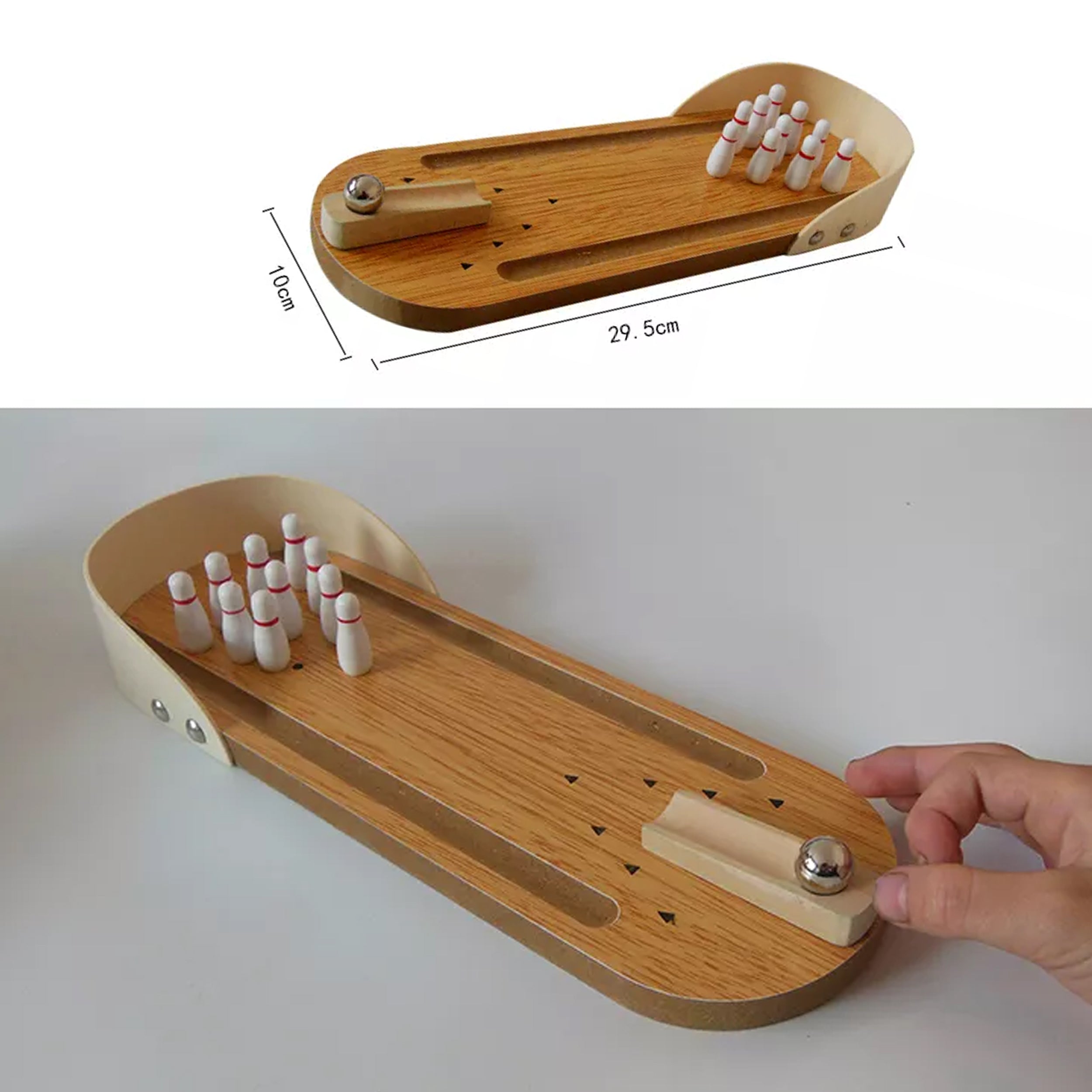 Elevate playtime with our Wooden Mini Bowling Game Ball! This miniature bowling set brings the excitement of the bowling alley to your home in a compact and child-friendly version. Crafted from durable wood, this mini bowling game includes a set of small bowling pins and a miniature ball perfectly sized for children's hands. It's an excellent way to encourage hand-eye coordination, concentration, and fine motor skills in kids while providing hours of entertainment and interactive play.