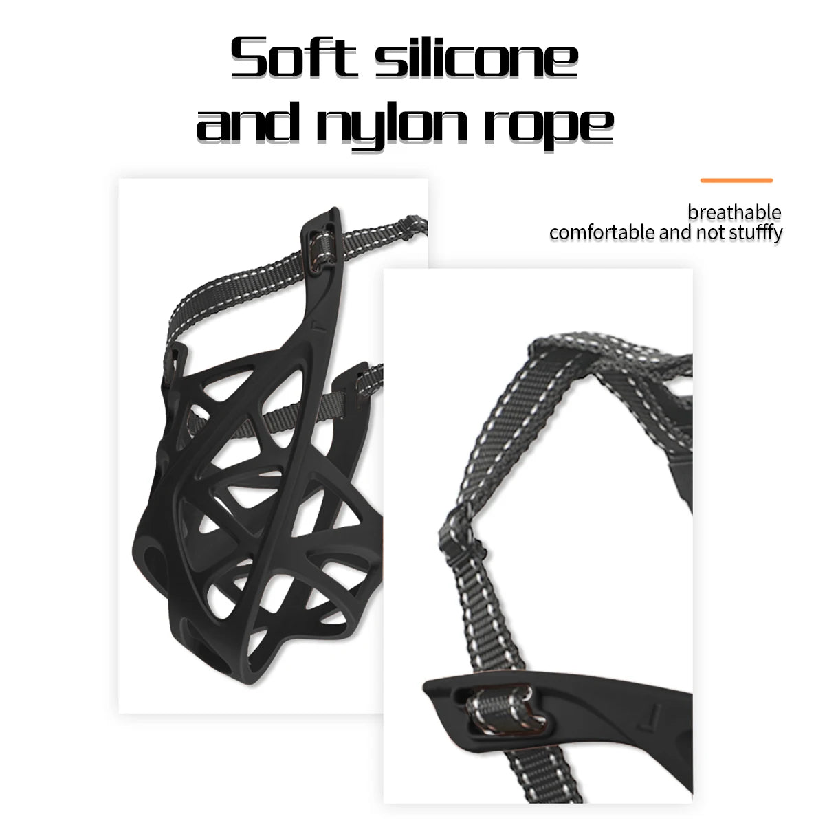 • Optimal fit & Secure - Comfort-fit design for all sizes of breeds with adjustable head and neck straps allow you to quickly adjust the size to fit your dog, making it ideal for the puppy, small, medium, and large dogs. Two folds in the strap on each side of the dog mouth muzzle are for making the dog mouth cover fitting for your dog. It’s our unique design and not stitching damage.