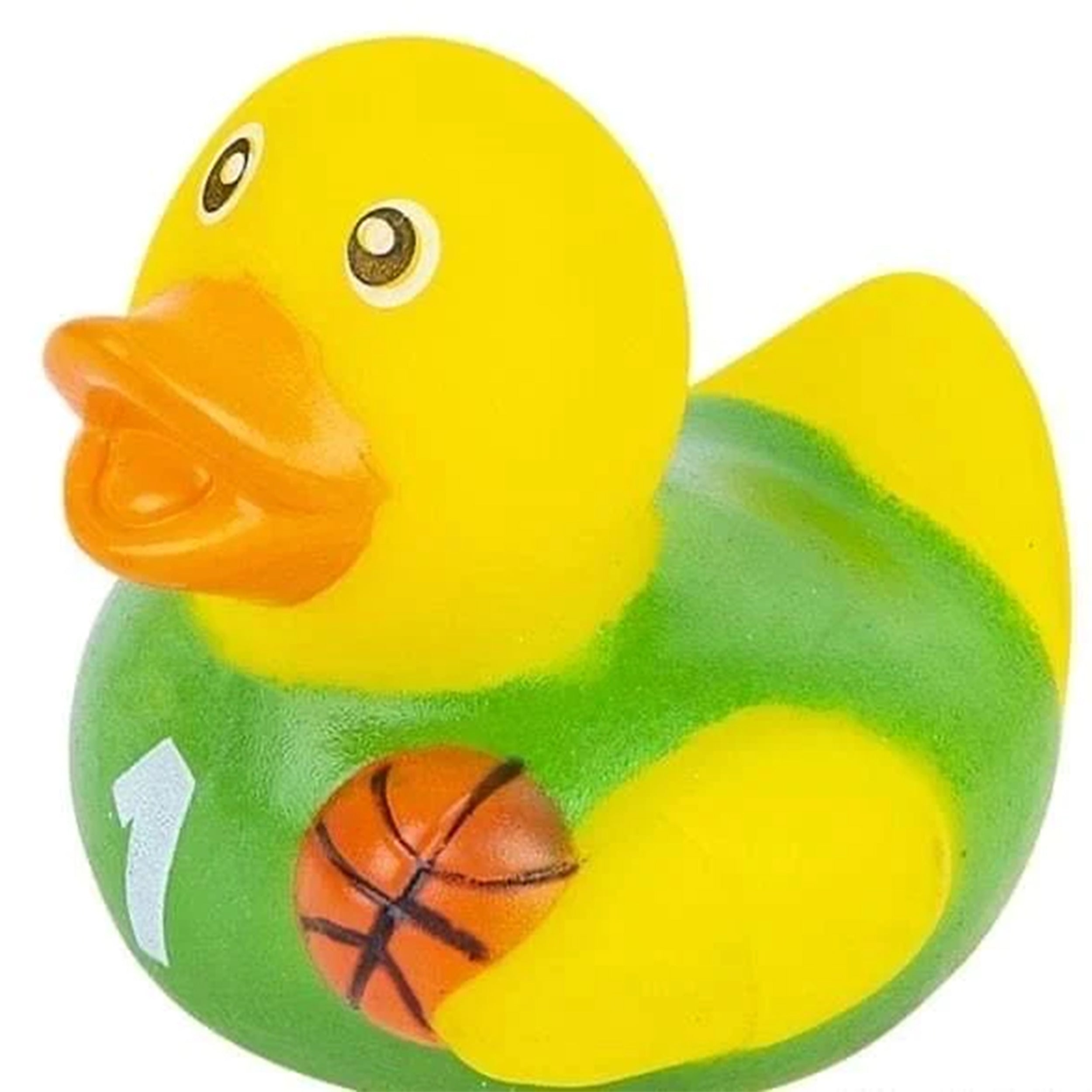 2. Basketball Theme: This rubber ducky features a basketball design, bringing the excitement of the court to bath play.