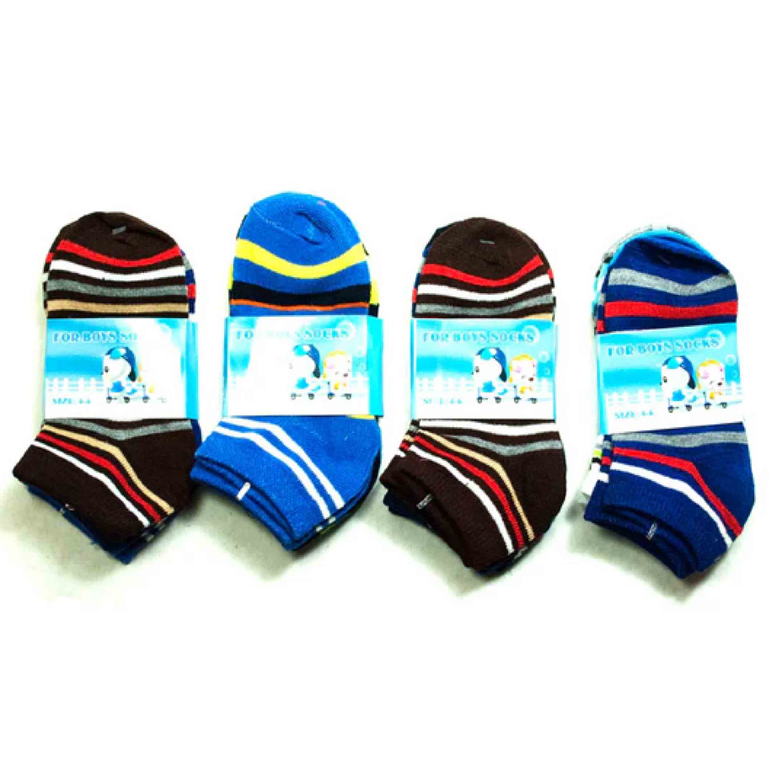Bring a touch of fun and comfort to his wardrobe with our Boy's Stripe Ankle Socks. These ankle cotton socks feature vibrant stripe designs, making them perfect for everyday wear or as part of school uniforms. Crafted from a blend of 80% cotton and 20% spandex, these socks offer a comfortable fit with just the right amount of stretch. Each pack includes a dozen socks in assorted colors and designs, providing variety for his daily outfits. Available in a pack of 3 pairs, these socks are conveniently displayed on a hook for easy presentation in retail settings. Whether for casual wear or school activities, these socks are sure to keep him comfortable and stylish all day long.
