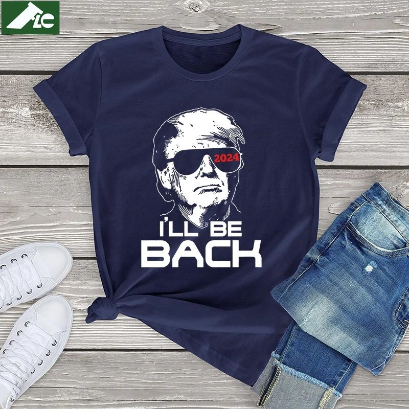 Unisex 100 Cotton t shirt women Donald Trump 2024 I'll Be Back Funny Trump T-Shirt women men clothing t shirt 90s girls clothes tees Tops trump streetwear