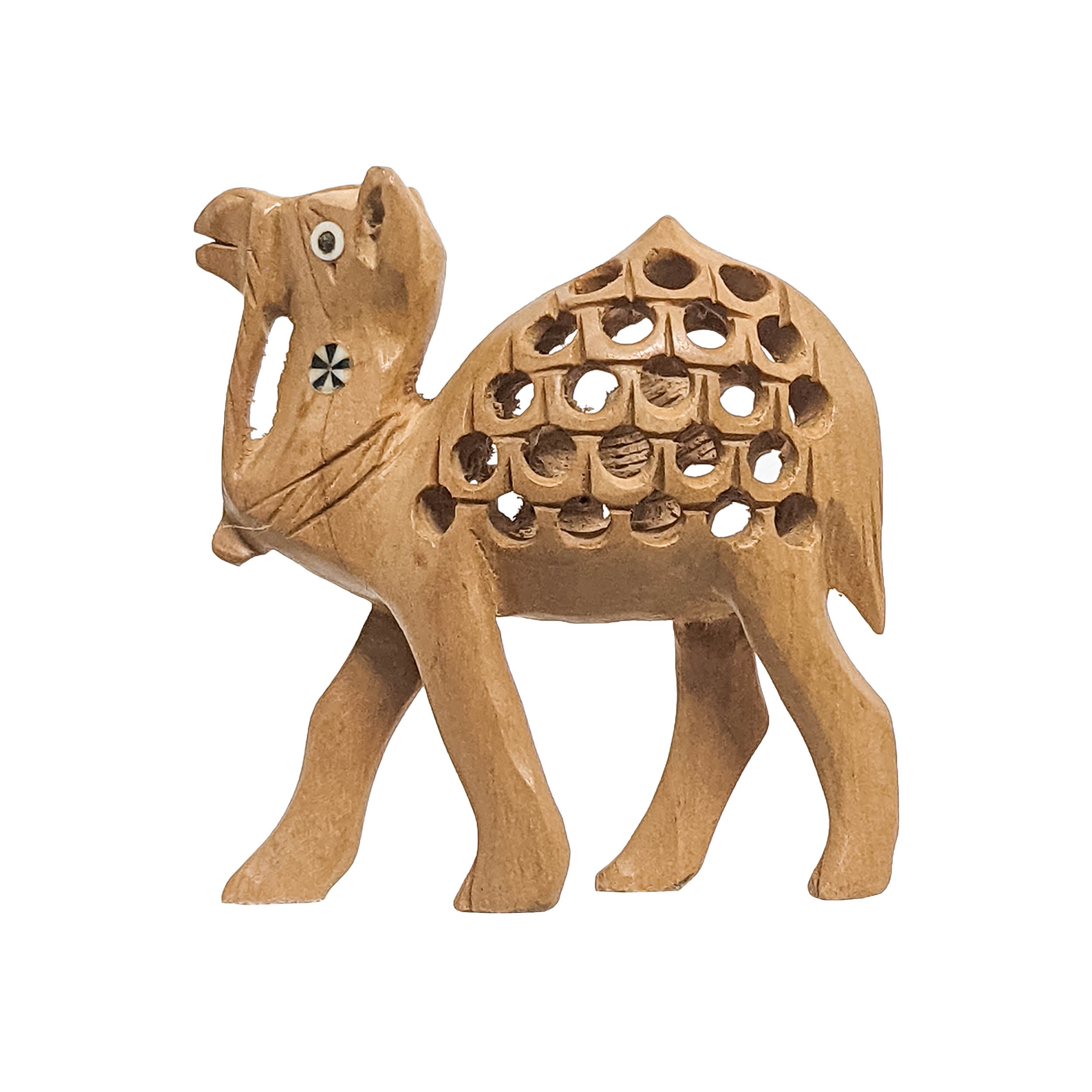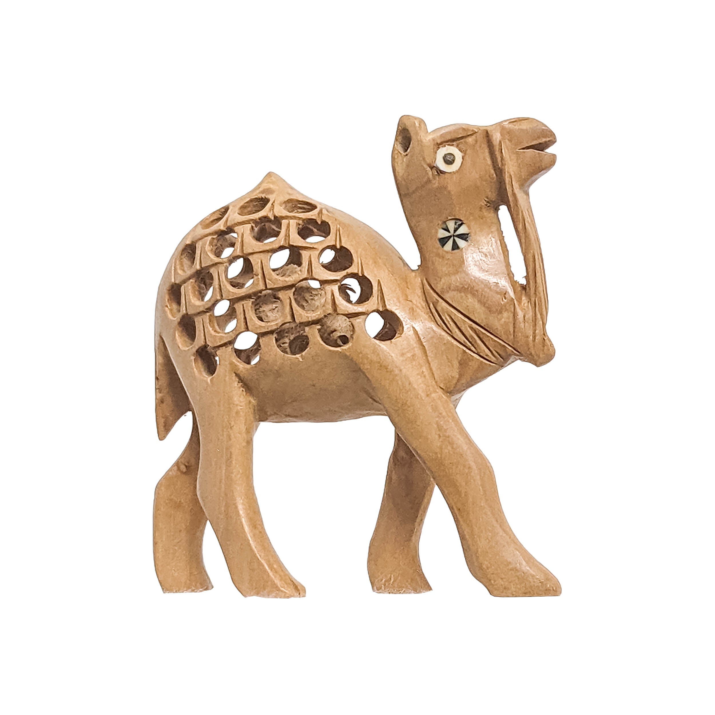 Embrace the exquisite artistry of our Handcrafted Wooden Camel featuring a Jaali Design, a truly distinctive decor piece. Meticulously crafted from wood, this camel sculpture showcases intricate jaali (lattice) work, adding an elegant and cultural touch to any space. Symbolizing grace and tradition, this handmade piece serves as a unique decor item, perfect for adding a touch of sophistication and heritage to your home or office decor.