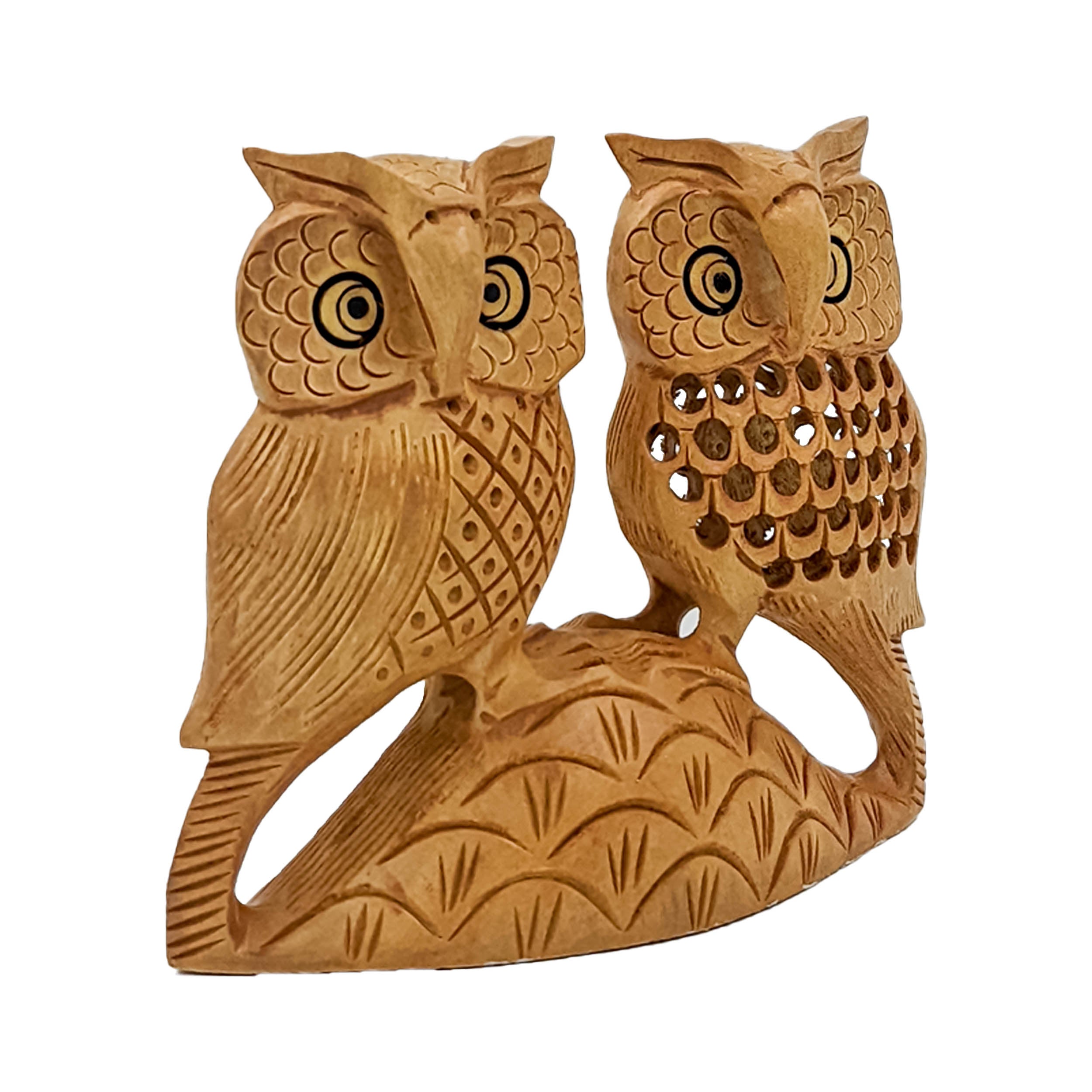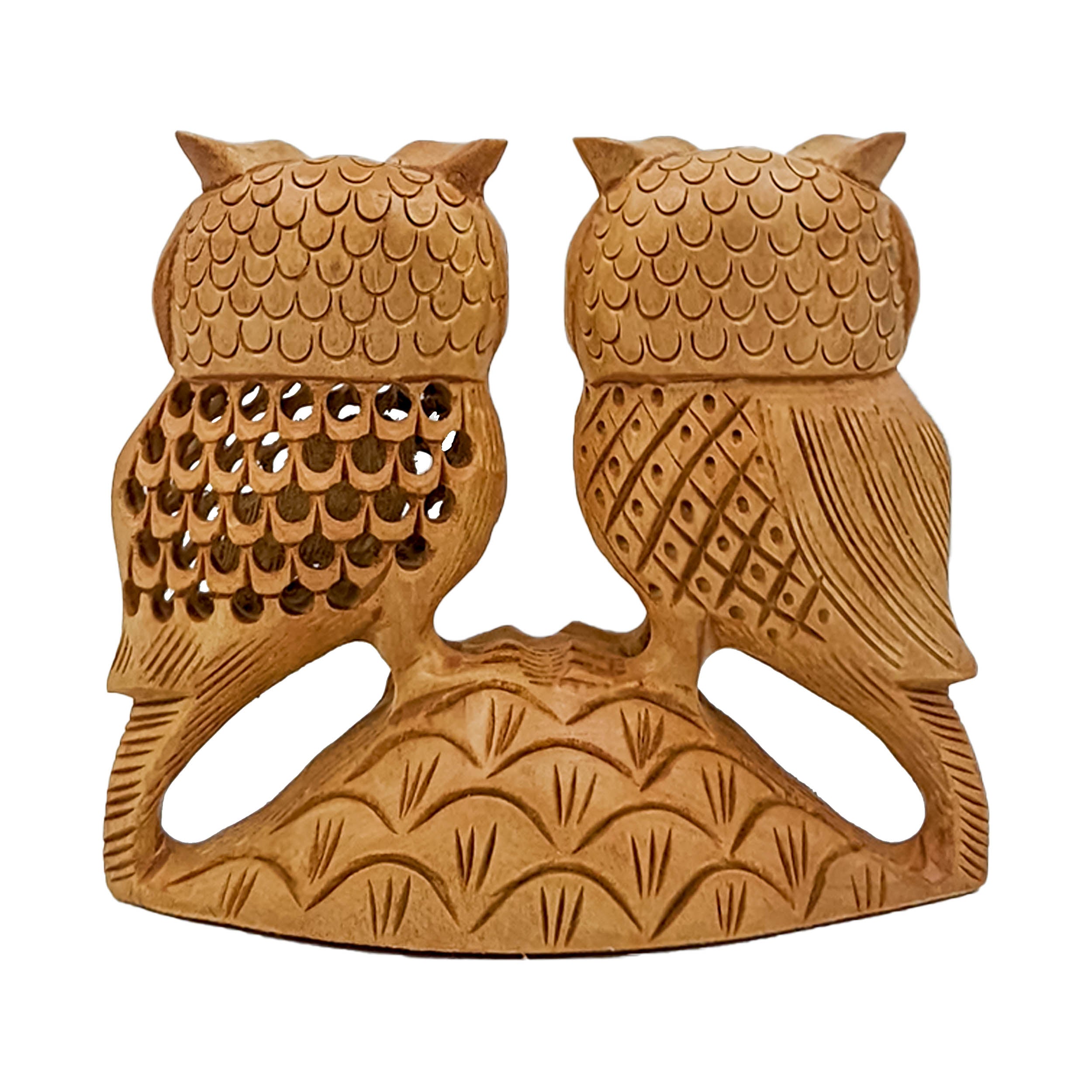 Elevate your home decor with our charming Handcrafted Wooden Owl Statue Couple. This intricately crafted 4-inch statue features a delightful pair of owls, showcasing artisanal finesse and attention to detail. Carved from quality wood, this adorable couple adds a touch of whimsy and warmth to any space. Perfect for shelves, mantels, or as a decorative centerpiece, these owls infuse a sense of companionship and nature-inspired charm into your home environment.
