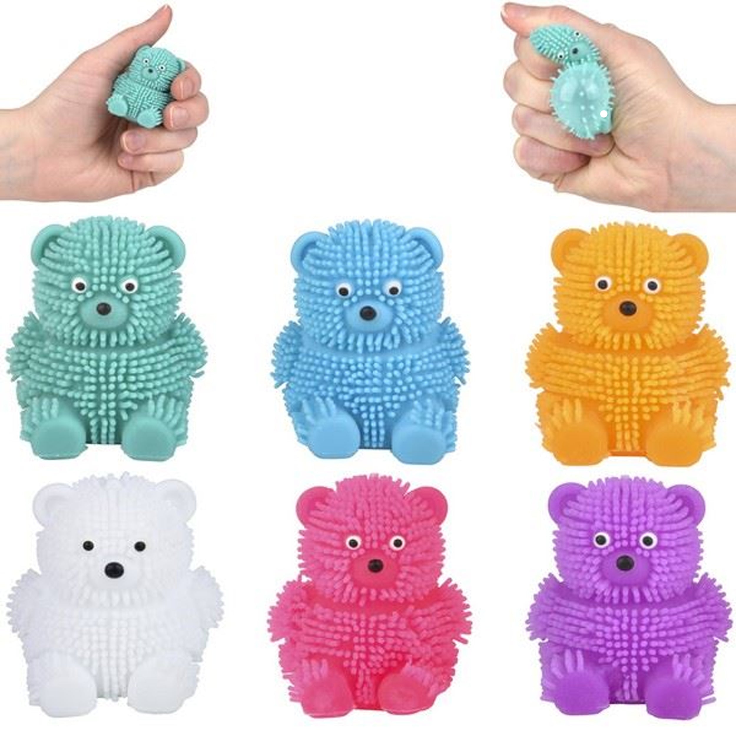 Assorted Colors: Available in a variety of colors, each puffer bear adds a pop of brightness and cheer to playtime, sparking joy and imaginative adventures.