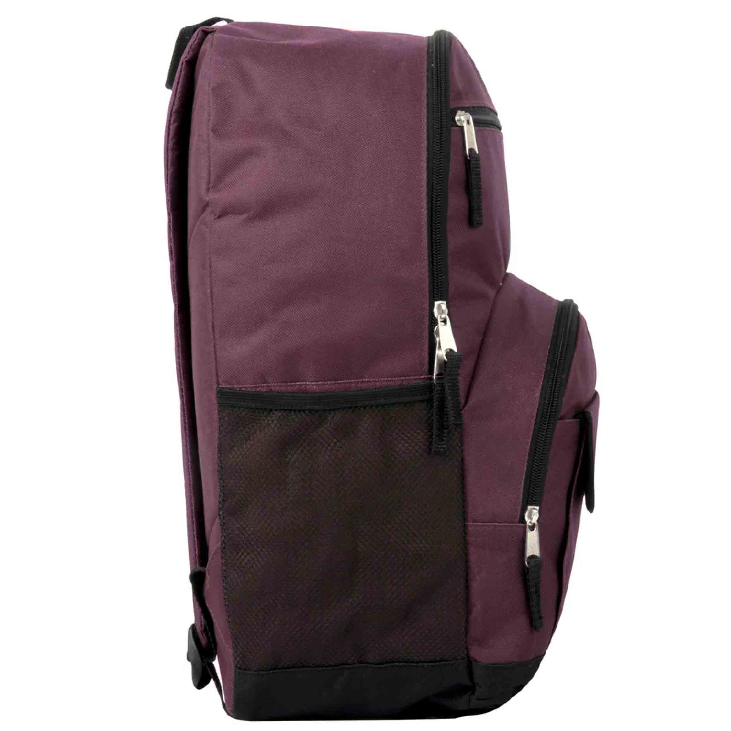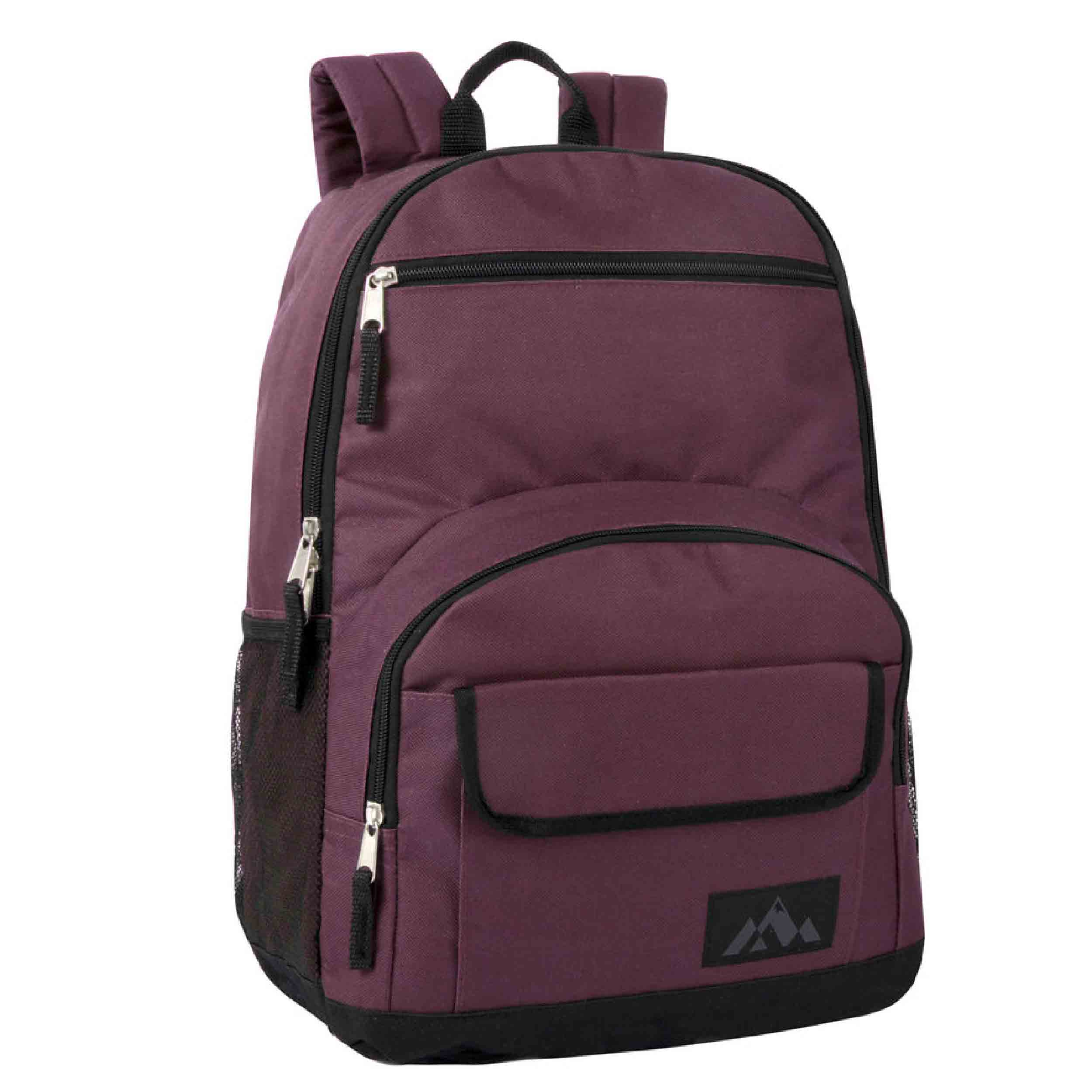 Stay organized on all your adventures with our Multi Pocket Function Backpack! Designed for functionality and durability, these wholesale backpacks are perfect for school, outdoor activities, and more. Measuring 18 x 13 x 6 inches, each backpack features two mesh side pockets and 3 front additional quick-access storage pockets. These pockets are ideal for holding water bottles, cans, or any essentials you need to keep within easy reach. The large compartments are equipped with double zippers for effortless opening and secure transportation of your school supplies or belongings. Padded and adjustable straps ensure comfort, making these backpacks a must-have when purchased in bulk.