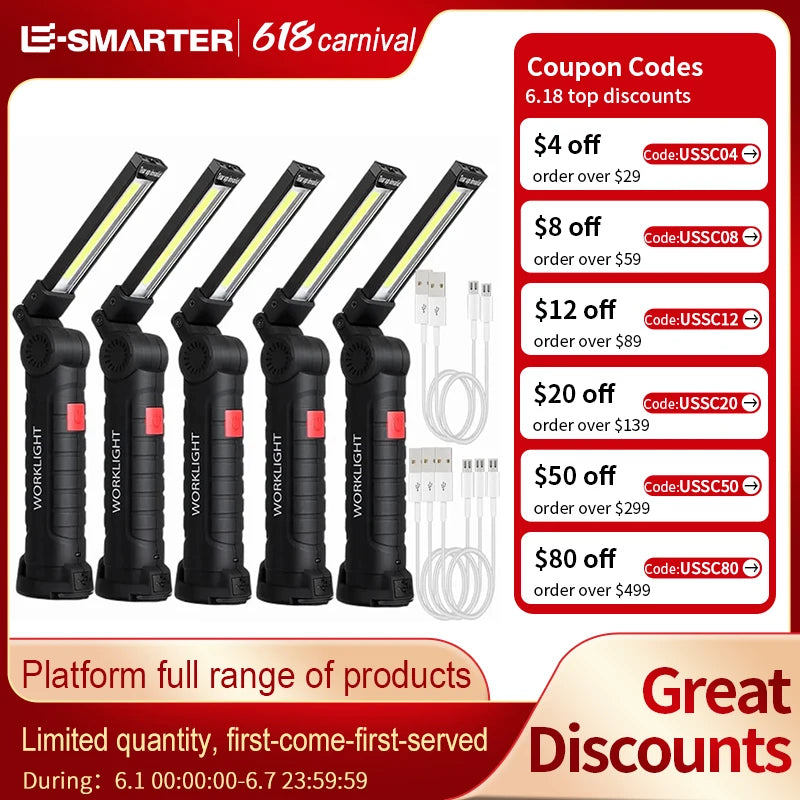 Illuminate your surroundings with the New Portable COB LED Flashlight. Compact and lightweight, this flashlight features advanced COB (Chip-on-Board) LED technology for a bright and even light output. Designed for convenience, it’s perfect for camping, hiking, or emergency situations. Its durable construction and ergonomic design ensure reliable performance and easy handling, making it a must-have for any outdoor adventure or emergency kit.