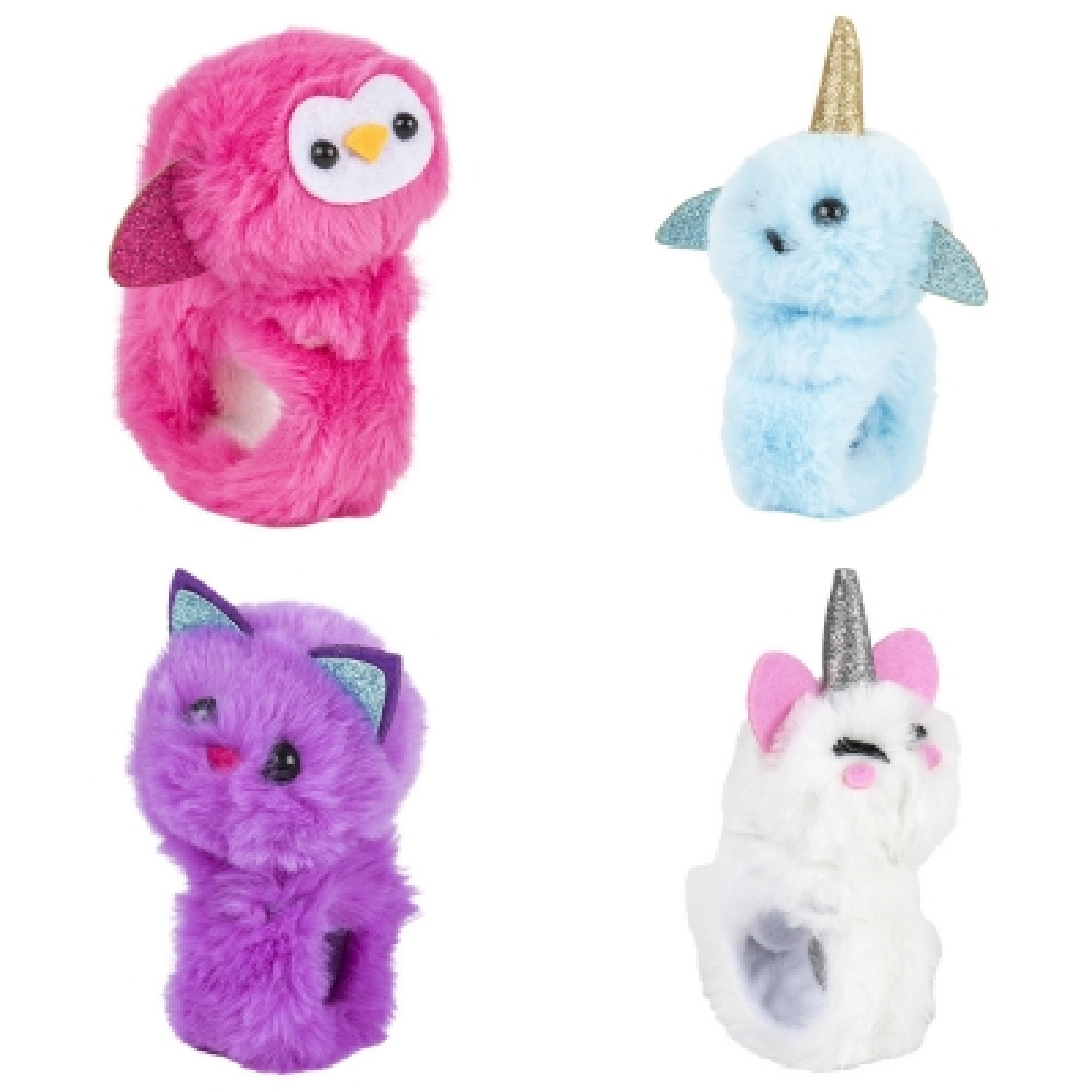 Add a touch of whimsy to playtime with our Plush Animal Slap Bracelets For Kids In Bulk! These adorable wrist accessories combine the charm of plush animals with the nostalgia of slap bracelets, creating a delightful toy that kids will love. Each set includes an assortment of designs featuring cute animals like pandas, unicorns, bears, and more. Simply slap them onto your wrist and watch as they instantly wrap around, providing a snug and comfortable fit. Made from soft plush material, these bracelets are gentle on the skin and perfect for hours of imaginative play. Whether they're worn as accessories or used as fun party favors, these plush animal slap bracelets are sure to bring smiles to children's faces.