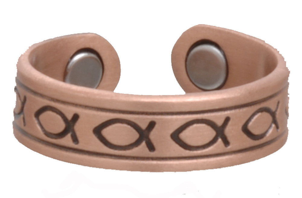 Home Wholesale PURE HEAVY COPPER CHRISTIAN FISH MAGNETIC RING ( sold by the piece )