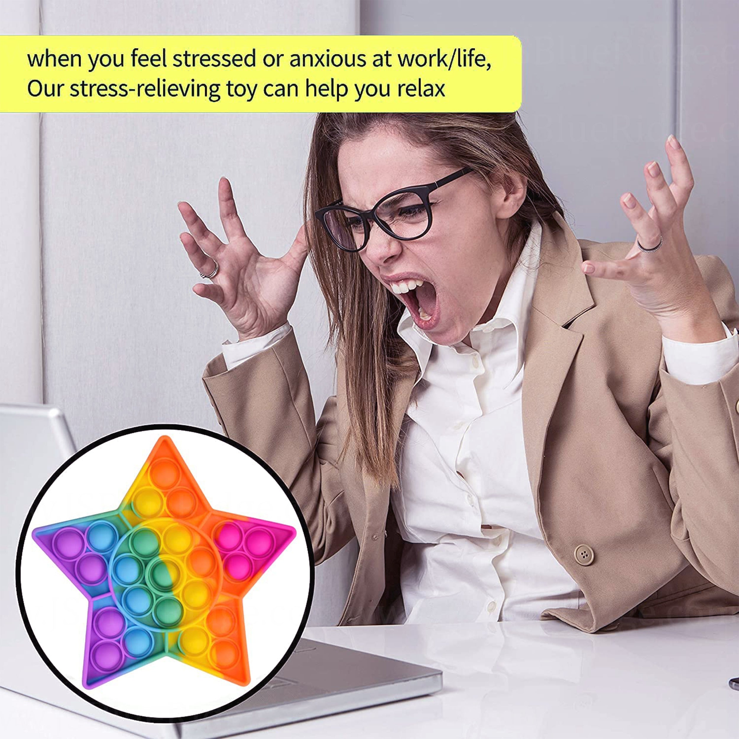 • Vibrant Rainbow Design: Features a bright, multicolored star pattern that adds a touch of fun and excitement to your fidget play.