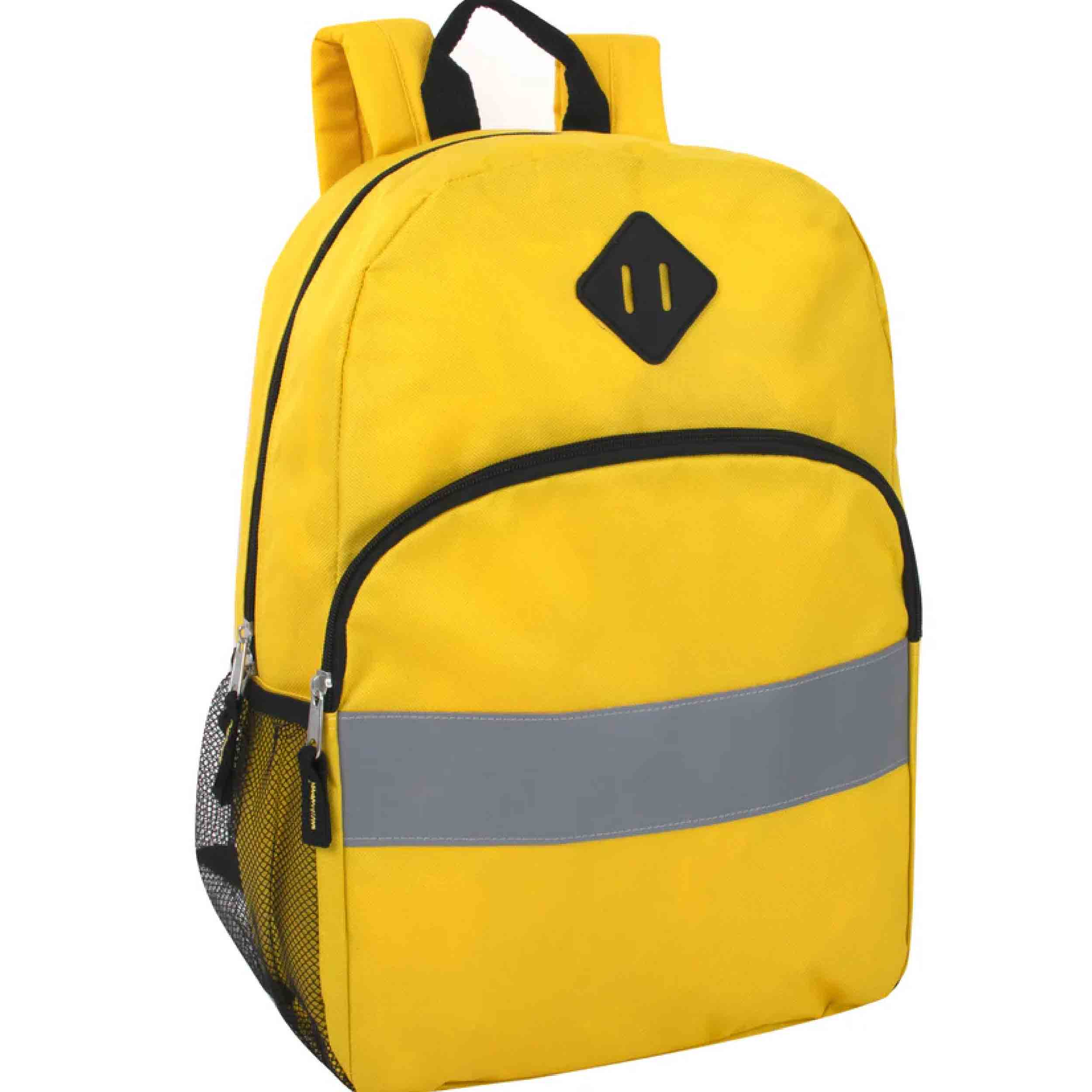 Prepare for the school year with our Safety Reflective 17 Inch Backpack With Side Pocket! Each bulk case contains 24 schoolbags, featuring a sturdy top handle, 2 adjustable straps, and 2 compartments for efficient organization. The main compartment is spacious, ideal for books, while the front pocket provides convenient storage for pencils, crayons, pens, and more. Additionally, the backpack is equipped with a mesh water bottle side pocket for hydration on the go. Made from high-quality polyester and featuring reflective accents for enhanced visibility, these backpacks prioritize safety and functionality. Get ready for the new school year with our durable and organized 17-inch backpacks!