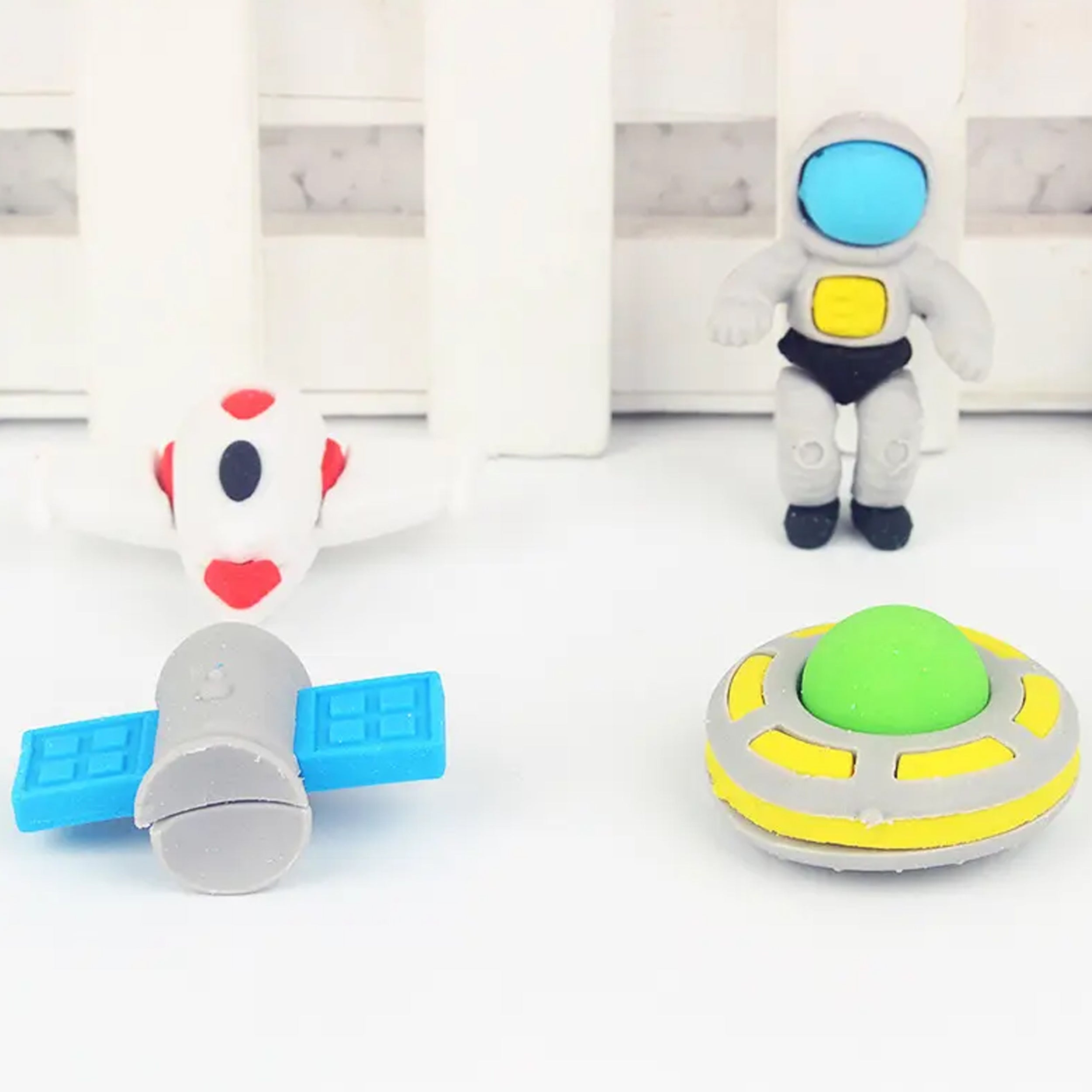 Explore the cosmos while erasing with our Universe with Outer Space Eraser Toy Set tailored for kids! This engaging set features erasers shaped like various cosmic elements such as planets, stars, rockets, and more. Each eraser resembles a different outer space object, fostering imaginative play during schoolwork. Crafted to efficiently remove pencil marks without leaving residue, these space-themed erasers add a touch of fun and learning to kids' stationery collections, encouraging creativity and interest in astronomy.