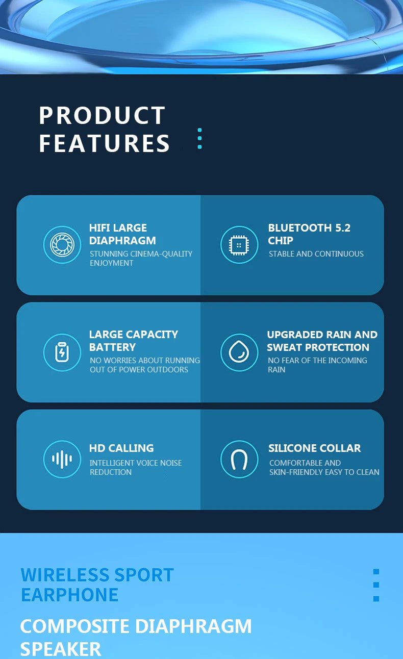 Neckband Design: Ergonomic neckband offers a comfortable, secure fit and keeps the headphones conveniently within reach during physical activities.