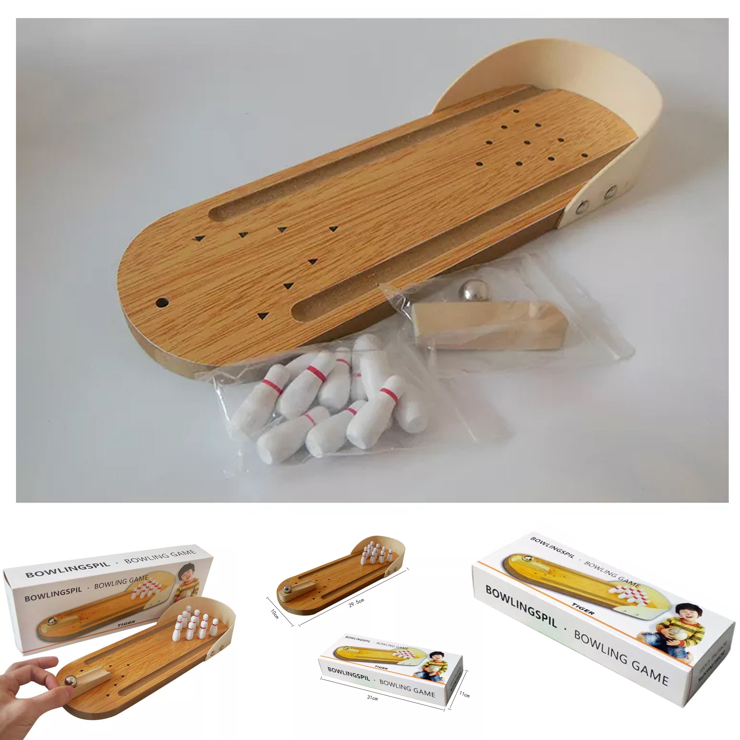 Elevate playtime with our Wooden Mini Bowling Game Ball! This miniature bowling set brings the excitement of the bowling alley to your home in a compact and child-friendly version. Crafted from durable wood, this mini bowling game includes a set of small bowling pins and a miniature ball perfectly sized for children's hands. It's an excellent way to encourage hand-eye coordination, concentration, and fine motor skills in kids while providing hours of entertainment and interactive play.